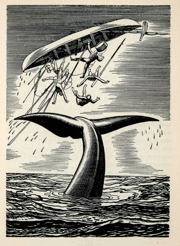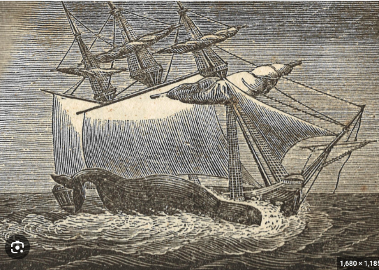 Ahoy, Glen ! After wondering how to (possibly) top or at least equal the feat of you Queen Anne's Revenge spewing fire, I thought of something as a suggestion. How about a sperm whale striking the Essex? !! You might use a somewhat larger bottle and model in a larger scale for effect, so the ship can be at an angle inside and heeled just after the whale strike. The stove or depression would be just above the water level with the head of the whale also above water in contact with the hull, with waves and spray pushed out on either side of the white whale's head. Semi translucent blue water would show the body of the whale still under water, but the flukes of the tail could come out of the water - possibly flicking one of the whaleboats. The reason for an angled ship would be to allow the long whale body to be 'fore-and-aft' within the glass container - possibly a half gallon cider jug. The ship had stopped to harvest whales from a pod, so the sails would be hauled up to the yards, and there could be a couple more whaleboats watching the scene in horror - with small figures in the boats and also on the ship. I looked for some period images and pasted them below a imagination starters. Another option would be to have the ship be the Pequod and the whale Moby Dick.