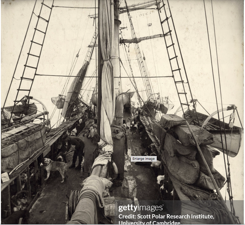 Since the hull will be painted (ruddy red below waterline - anti fouling paint - and black above), you don't have to worry too much about "exact" planking other than the width to use. Thinner scale widths may be easier to work with anyway. A single coat of paint will let the planking lines and some of the wood grain 'telegraph' through - which is a good appearance. After all, its not a racing yacht that gets completely filled to a glossy smooth surface. The Endurance had several configurations: her prior life as Polaris; the initial modifications in England; the additional modifications in South America (the one she had before getting stuck in the ice); and the later modifications made after getting stuck. Note that there are pictures from all phases available on line, and it is not always clear which phase you're looking at. Prior to getting stuck, the steering mechanism was enclosed by a wooden shed (kit provided) to keep the gear from getting iced. This feature was one added in South America prior to departing for the Southern pole. (She did not have the steering shed in England, and the shed was later removed after getting stuck, and was used as a shed on the icepack.) Another key feature is that the deck amidships was completely planked over to the forward cabin in South America, to provide a greater enclosed space against the anticipated cold. This is why the inboard boat mounts were changed into having all the boats hung outboard on davits prior to heading southbound. A phot below shows the open space 'bridged' by the walkways (kit config.) setting out from England, contrasted with 2 other photos showing the polar configuration with extra decking amidships and boats hung outboard ... as well as the kennels added in South America. This can make the model easier to rig, since the pin rail around the main mast was moved (or another one added) higher up above the added decking - where it is more accessible to the modeler (rather than have to use long tweezers to attach lines down in a confined area).