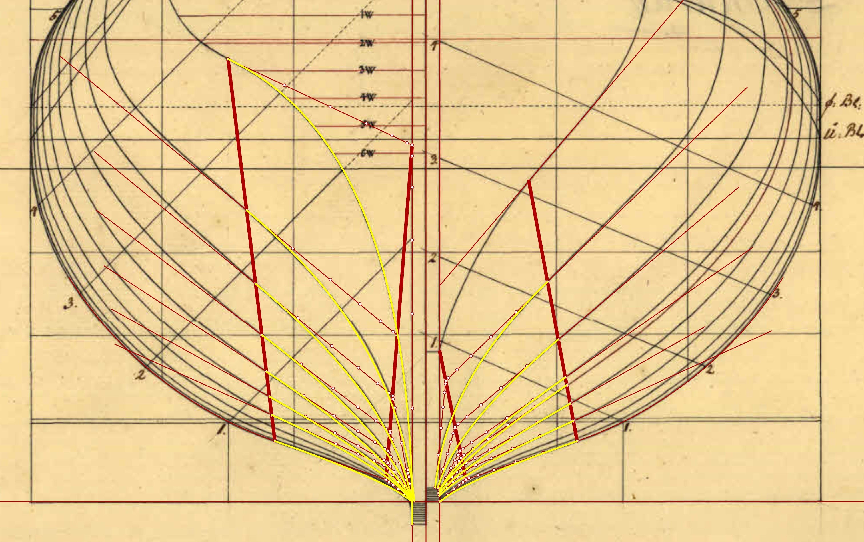 Yes, and yet in this case, it is the harmonious division of diagonals, as described in French works on naval architecture, and not the parabolic method of shaping frames. I admit openly that in this case I made a mistake in identifying the method, and my only (un)justification is that I unforgivably jumped to conclusions without a complete analysis of the case, as should be done and as I usually remember to do. Sorry. However, the other comments remain valid .