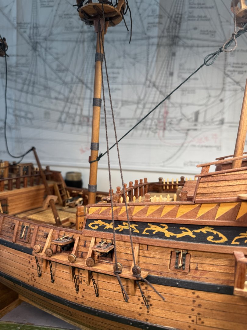 15. Hi Johnny, Thanks very much for your valuable comments and suggestions. I do agree with you on the trimmed balcony. However, I did find some examples (I could not re-dig the pictures) where the balconies were quite slim (or almost non-existent) on the sides. This was an experiment anyway~ But, with better reception by my art student daughter! On the 2 bow guns, I really wanted to incorporate them but the only space possible would be on the deck of the forecastle. I could not find any historical evidence that this was done. But, then again I could be wrong. I could put 2 small guns on the top of the forecastle. Let me dig further on this possibility. Anyway, I am very grateful for your comments. Much appreciated!! Regards, Rock