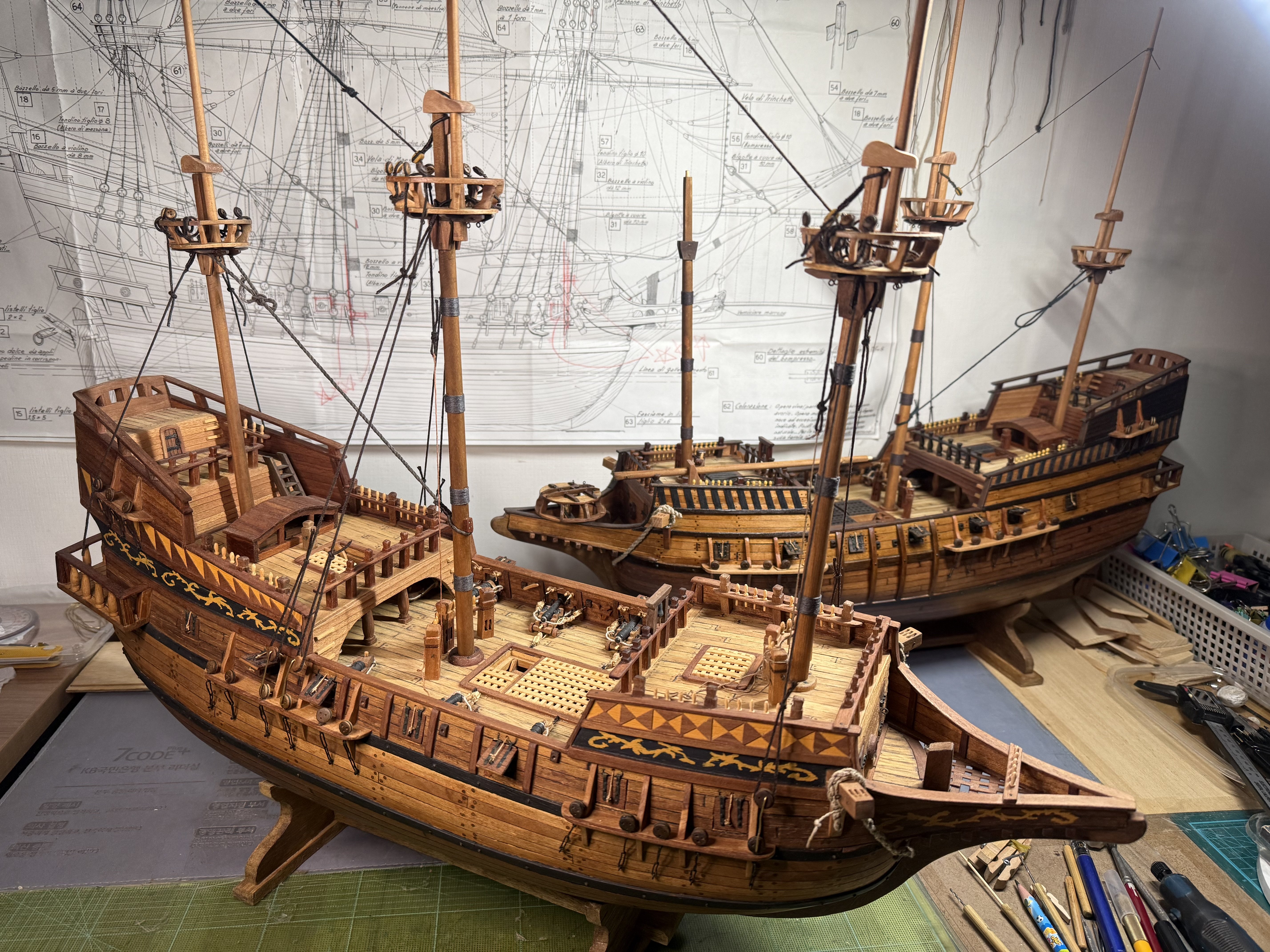 20. Hi all~ Finally, the hull work on GH2 is complete. Below are some pictures of GH2. Comparing GH1 with GH2. GH2 is definitely simpler and darker than GH1. They both seem to have their charm. Also, GH2 (as intended) has more contrast in color compared to GH1. Now, I am resuming the work on GH1 - masts, rigging etc.