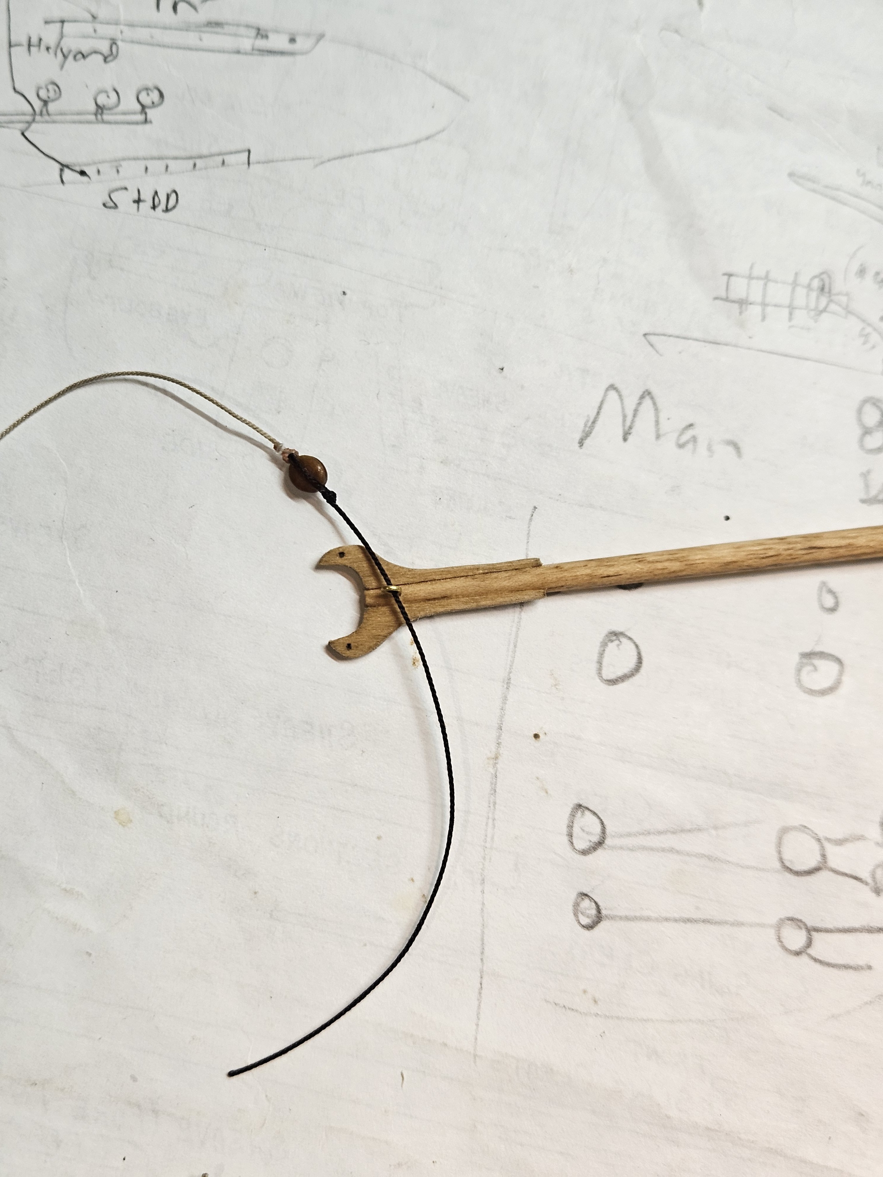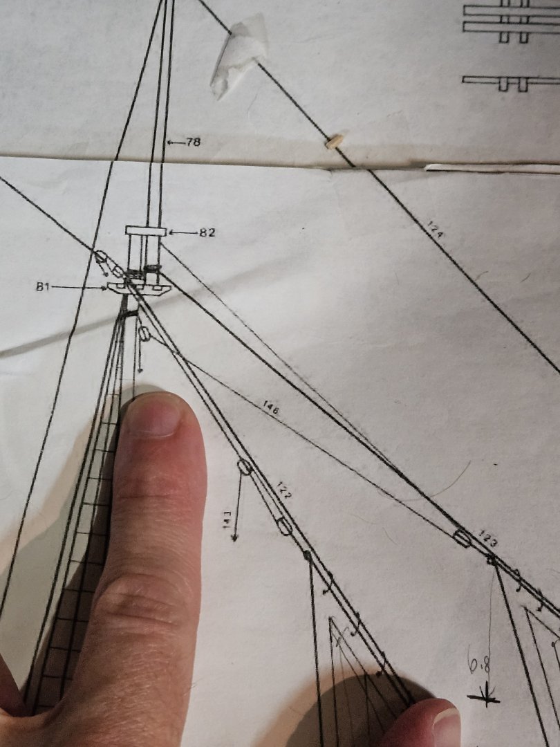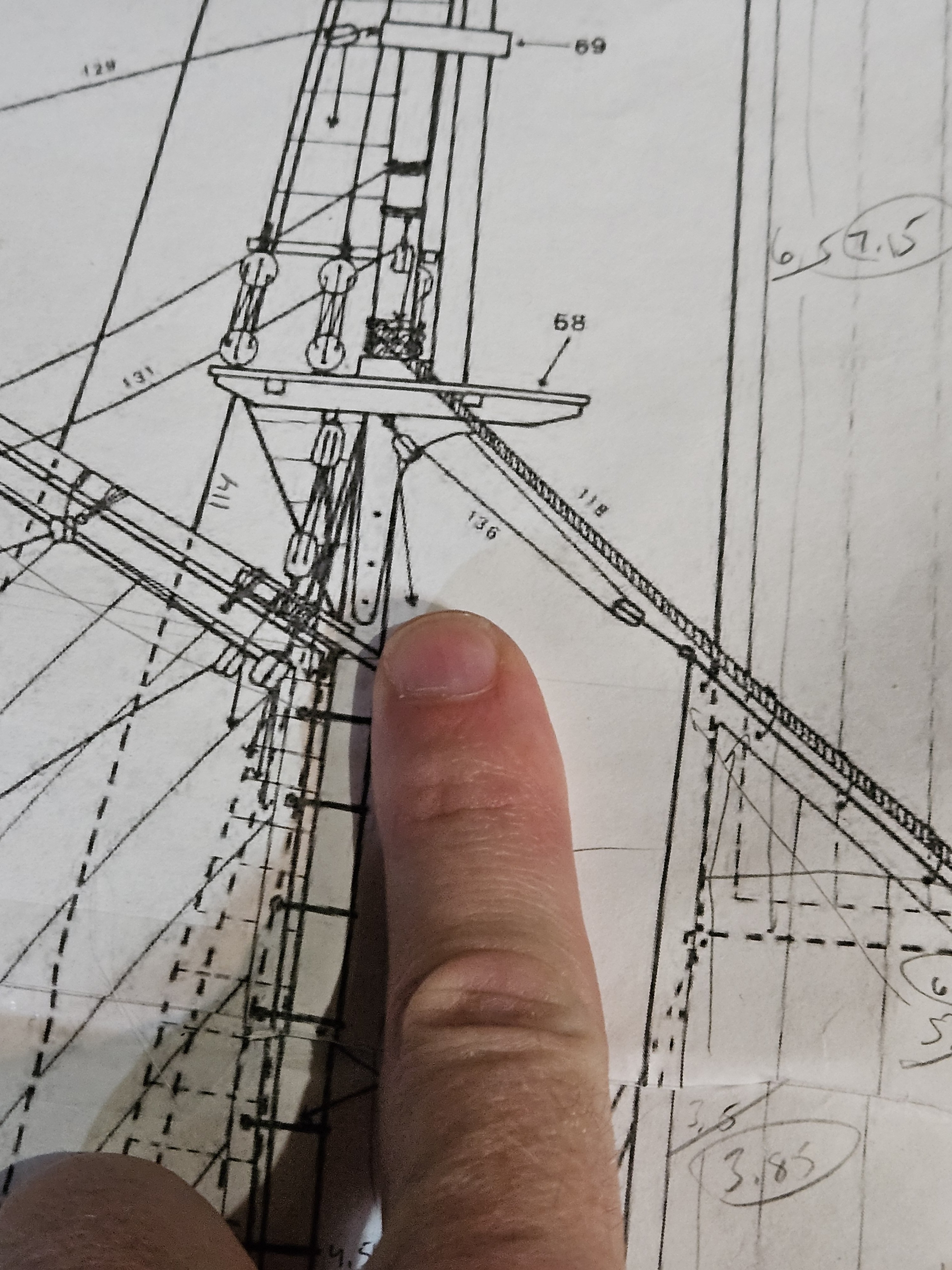 Happy New year all! This is the first progress update of 2025 for the Fair American Model ship. Which makes this the start of year 6 of the build - Seriously hoping to finish by the summer! Anyway, I'm starting on rigging the yards, with the Main Lower Yard. There are 2 buntline cringles on the sail, so I need two blocks each side. these are 3/32" Singles. Looking at the Niagara plans I purchased, these blocks are nearly vertical above the cringles, or at a slight angle, so thats how I arranged them on the mast Of course once I attached them, they're facing the wrong way. They need to have the block holes going vertically, to allow the rope to pass straight up to the top. This was because I only used a single knot at the top of the block when stropping. I didn't think about that. So I removed that block and added another knot, making sure the ropes go parallel to the block holes. Now when I added them to the mast, they're facing the right way. I also had to tie them so they stick forward just a little so the rope can reeve through nicely, while also being aware of the orientation of the foot ropes and cleat side, so it's not backwards. Here is the finished yard with buntline blocks and then a single leechline block on the outermost end of the yard. The sheet blocks were next. I used 5/32"blocks for these. The rigging plan doesn't specify sizes of blocks, but I later found an excel sheet that ''someone'' created that I used for a guide of rope size and blocks, shown later.... Additionally, during my research and learning about model ships, I saved this snippet about general rigging. It shows some basic blocks and locations on the yard. On the Niagara plans, the Clueline block is on the Inside of the yard, and the sheet is outside of that. In other ships, I've seen it the other way, where the sheet block (the bigger block, is the one closest to the center of the block. For mine, I tied it off outside the cleat, where the foot rope ties in. The sheet was 5/32" and the clueline block was 1/8" single block. Tied and glued in place. The braces were next. How I strop the blocks is, again, fairly simple. I'll take the rope starting at the bottom, over hand knot it on the top... Then add some CA glue to secure it. I'd put the trimmed/stropped block into a little jig with .031" drill bit, and hold the two ends with tape. Then pinch and CA glue them close to the block and let it dry. Then I can take small black sewing thread and make a neat little seizing. I have to knot the first loop and glue, make a couple more loops, then knot the last one and glue. After which, I'll trim all the loose ends up. I'm pretty happy with the look. That's one!!! I'll look at the plans for the lengths of the braces and try to make a loop to that size. This is trickier. I had to sort of guess the diameter of the loop before I knotted it, so that it will fit over the end of the yard and not be too tight or loose. But I made it work on my little jig. The reverse action tweezers were handy with adding some small amount of tension before I glued things. 2 braces done.... The first time I added them and glued them to the yard, they were facing the wrong way!!! Luckily I noticed/remembered the orientation of the main yard - according to the rigging plans these ropes are braced on the Foremast, so they need to go forward. Thats it for today....I have more progress with this one yard, but that'll wait for another post in the future. Thank you for reading and following along - Jason -