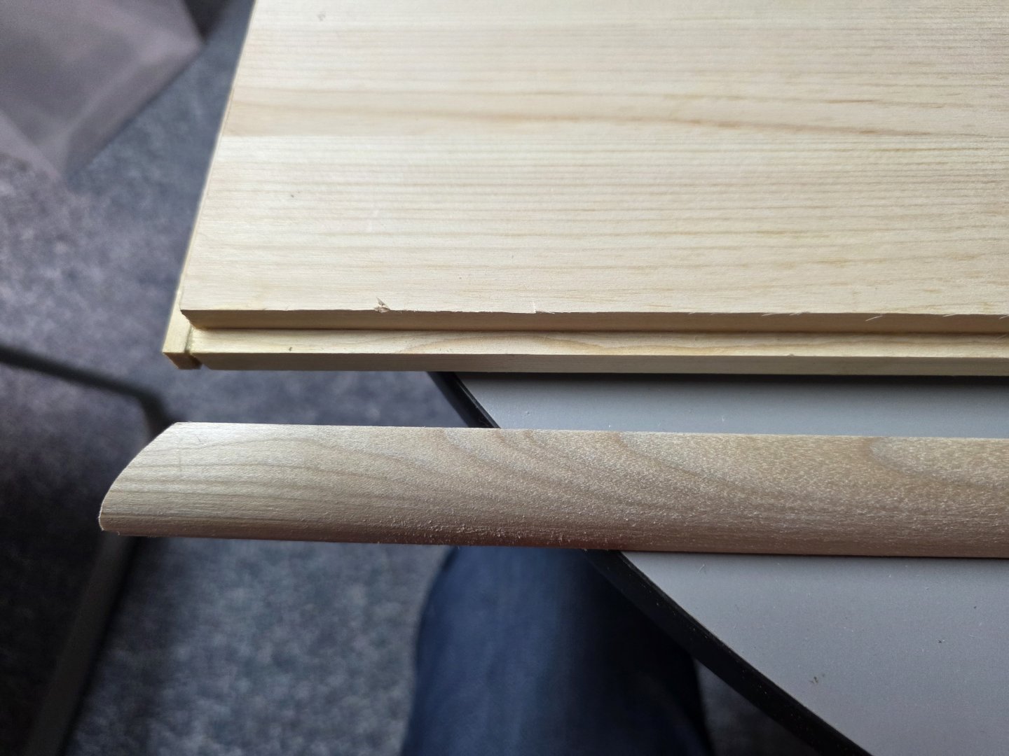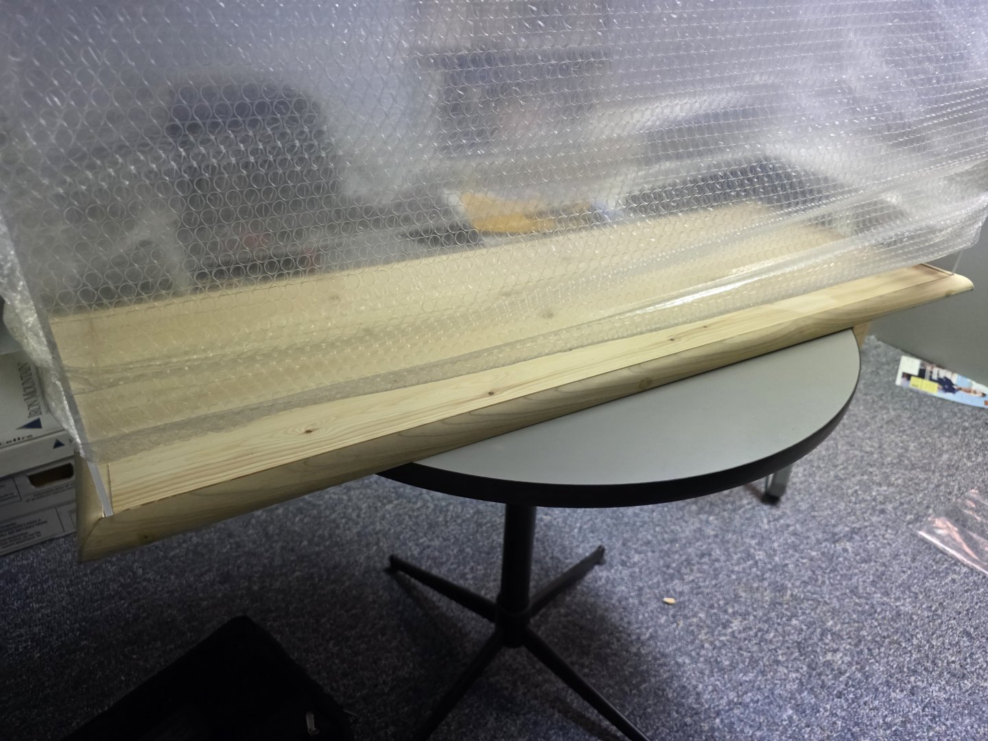 To conclude my build log, I have completed fabrication of a case to house and protect my Flying Fish. I had a 5-side 3/16" Acrylic box made at a local specialty shop. I made my own base from a 3/4" sheet of laminated pine shelving purchased I from a hardware store. I cut the sheet on my radual arm saw to the inner dimensions of my case then glued wooden strips 0.228" wide x 1/2" tall along each edge. I cut the strips from the leftover pine. I then cut pieces of 3/4" quarted round poplar molding to size and glued them to the side strips. Two or 3 1.5" finishing nails were then hammered through the glued strips into the main base to secure the sides. Several coats of clear Varathane finish were applied to all the wooden surfaces to protect the wood from humidity damage. I screwed the base of my model to the pine base and added 6 small rubber feet to the base. The completed cased model is shown in the first photo below. A laser typed plaque will soon be added inside of the case. I had a very small hole drilled near the bottom side edges of the Acrylic box to allow for air exchange. The holes were filled with a cotton plug to prevent insects getting into the case. The other photos show some of the steps in the case base construction. Thanks for your interest. Jared
