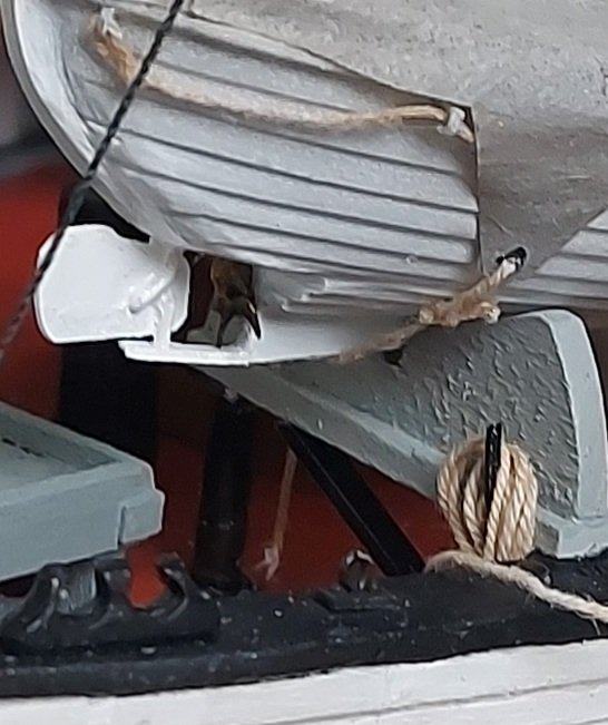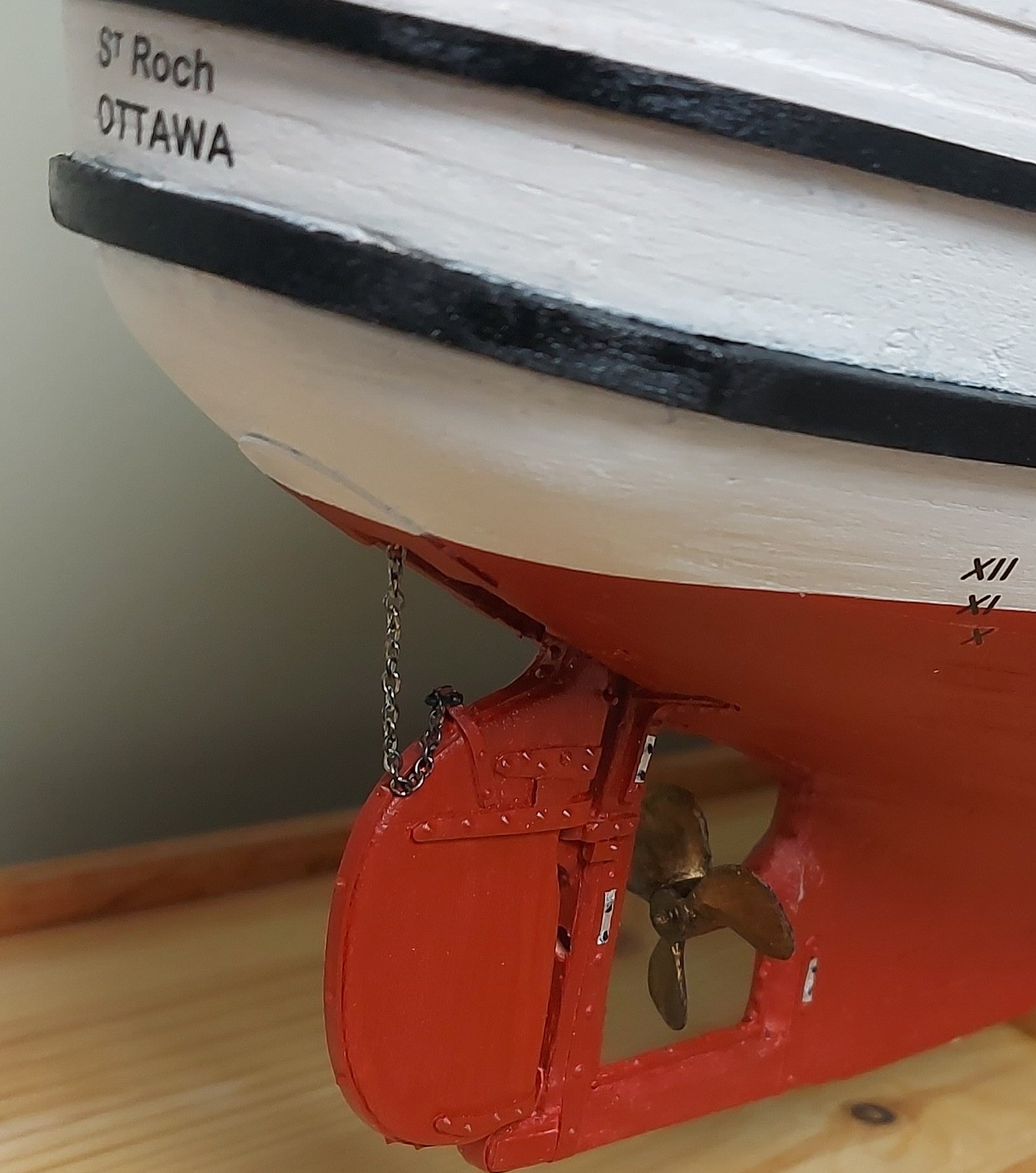 Taking a break from tying shrouds... can't imagine the fun y'all are having rattling down a square rigger like a tea clipper or Victory!! I'm satisfied with the prop colour, so St. Roch now has motive power! And so does her motorboat! This prop just fit... but I didn't want to shave down the blades because they are so delicate, so I hope it is posed convincingly! Regards, Bruce