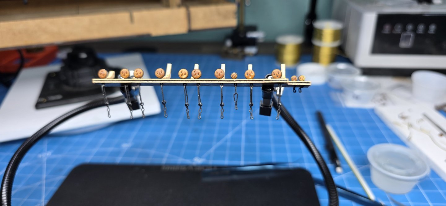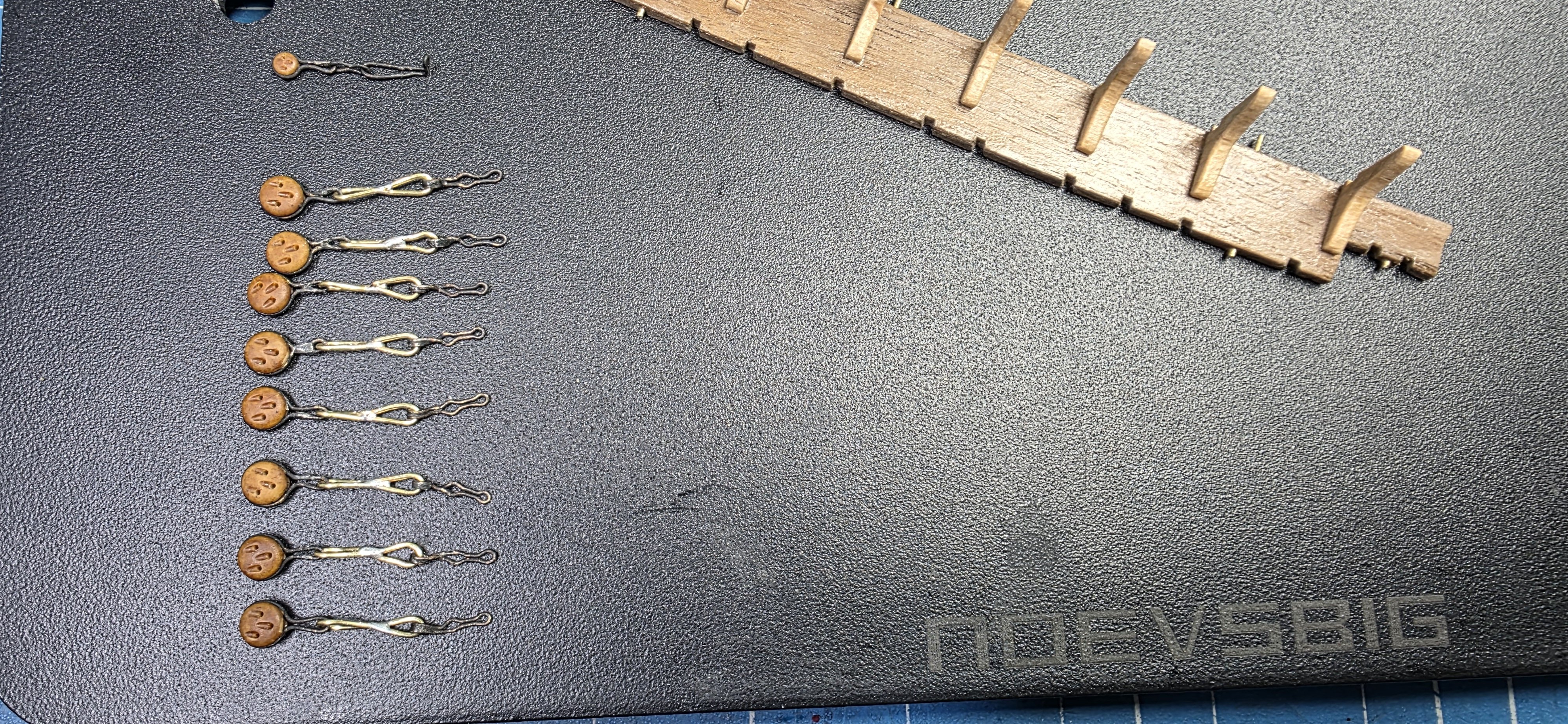 Hello All, I have a small update on the Bellona progress. I have been working on assembling the deadeyes and chain plates. It has taken me several attempts to fabricate them and come up with something that I feel looks better than what was supplied with the kit. I used a .5mm brass wire for the deadeyes and a .7mm brass wire for the chain plates. I was not happy with my first attempt, the chain plates seemed to look kind of like a paper clip. My second attempt was a little bit better, but I was still not very happy with my results. My third attempt was more pleasing to my eye, so that’s what I went with. For the purest out there, they are not historically accurate, but there are quite a few things on this kit that are not accurate. I have completed the port side channels and will move on to the starboard side applying the knowledge and skills I gained. I don’t think the starboard side should take as long as the port side now that I kind of know what I am doing. LOL I won’t get into too much detail of how I constructed these, I will let the pictures speak for themselves. As always, you comments and guidance are always welcome. Cheers Nearshore