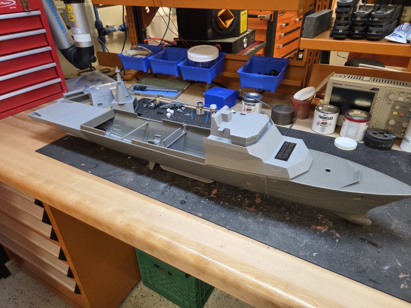 OK, New printer (Bambu H2S) is setup and running now. I've got a re-do of the hull for the R/C version printing at 1/288 scale as a test, and if that goes well, I'll click 'print' and on Monday I'll have a 1/144 sample hull waiting for me in 4 segments.