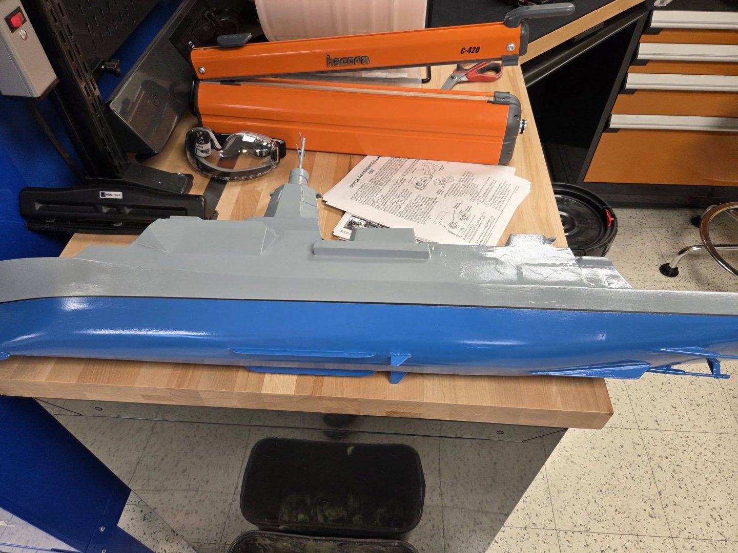 I've got some 'ship's side gray' applied now - still needs sanding and touch-up, but it's getting there. I've been playing with the print files in the background - most of the walls on this model came in at less than 1mm. I've doubled that with the new version. One of the problems this set of stl files has when downloaded is that it has a lot of facets/triangles rather than a smooth hull form. I'm working to rectify that with a buddy who knows a thing or two. See how it goes.