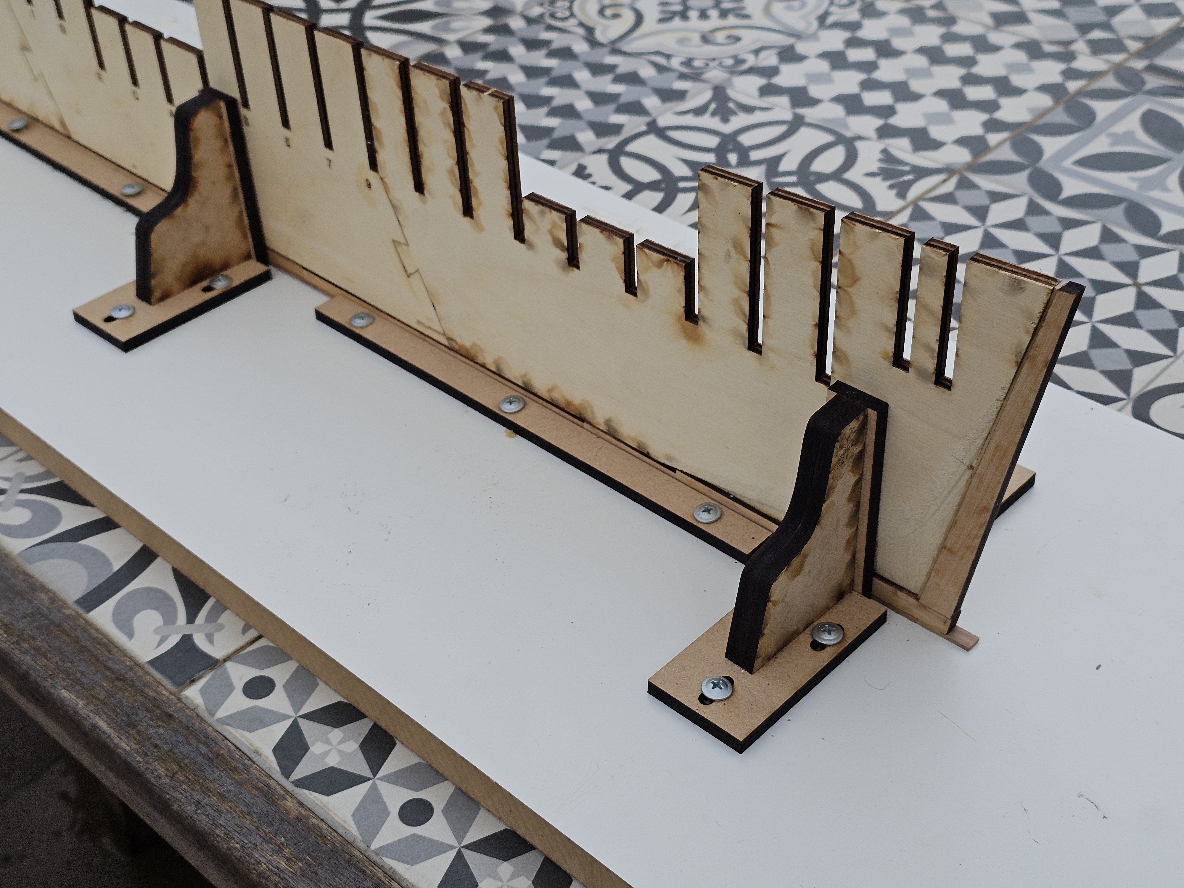 2. I have been busy with life but have been pottering along on the Winchelsea. Over the last several months I have added the Rabbet, the Keel, and the False Keel. Various small issues were encountered but I tackled them one at a time. After a long layoff, I was eager to get going and screwed up when removing some of the bulkhead former at the stern to allow planks to lay correctly. I did not angle the thinning, i gave no thought and took it down evenly. 😒Some filling will be required. After that, the keel and false keel were added. After cleaning the joins and surface up, attention turned to my building board. In Lightburn, I designed some 6mm MDF supports that needed to be cut by the laser as well as 4 strips of MDF that are straight edges. Yesterday, I used the laser cutter at Adelaide Makerspace to cut a load of sub assemblies from the 6mm MDF. The were assembled into braces that hold the bulkhead former, and the keel straight. A couple of hrs later and I had the building board, supports, and the bulkhead former completed and in place. I then glued in the bulkheads making sure the orientation was correct for the numbered and lettered bulkheads. I then turned my attention to the 3/64th inch pieces for the window spacers, the BF-1 spacer shims and the rear transom. I got 3 veneers, 1 . My Proxxon machines cut to a width of 80mm max. So, how to get a sheet or two of that size (I use mm, so it is 1.2mm sheets needed.) I visited a local specialist timber supplier who had various veneers of different thicknesses. I got 3 pieces of 750mm x 190mm x 0.5mm thick Rock Maple. I cut two of them into 4 pieces just over 300mm long. I then used Titebond II to glue two together giving me 2 final pieces at 300mm x 190mm x 1mm thick. The glue layer will add a touch of thickness I hope. I have them both under a weight of books to keep them flat until fully cured overnight. I will then go into the maker space and use the laser to cut these shapes out. Hopefully my next update won't take as long.