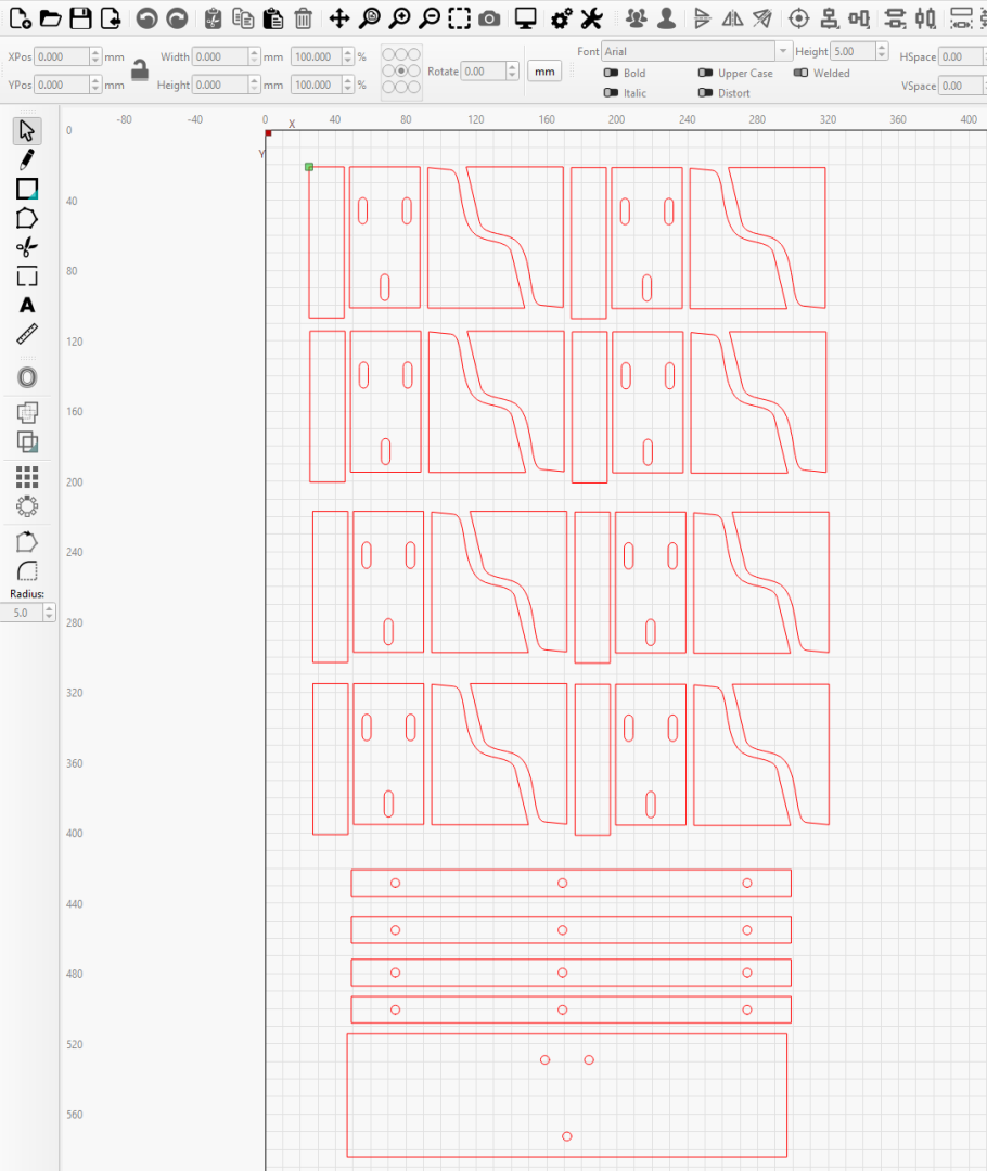 3. Morning All, I have downloaded all of the files for the Triton build. On my HMS Echo cross section, I used rubber glue to place the paper cutouts on the wood so they could be cut out. I found this not a particularly good solution as the glue would quite often let go.. For this section I have taken the assembly pdfs and imported them into Lightburn to see if I could separate out the frames only and place them onto the Lightburn working area. Shown below are the forward and abaft components for the 4th frame. Since the frames are symmetrical for both sides I only needed to copy the relevant ones for the opposing side. I plan to lightly vector etch the wood. I had considered cutting them on the laser but the charred edges would need cleaning up. Any thoughts pro or con for doing that? I am combing the pdfs and the wood sections. Best I can make out is that all timbers on each frame are the same thickness at 5mm thickness.