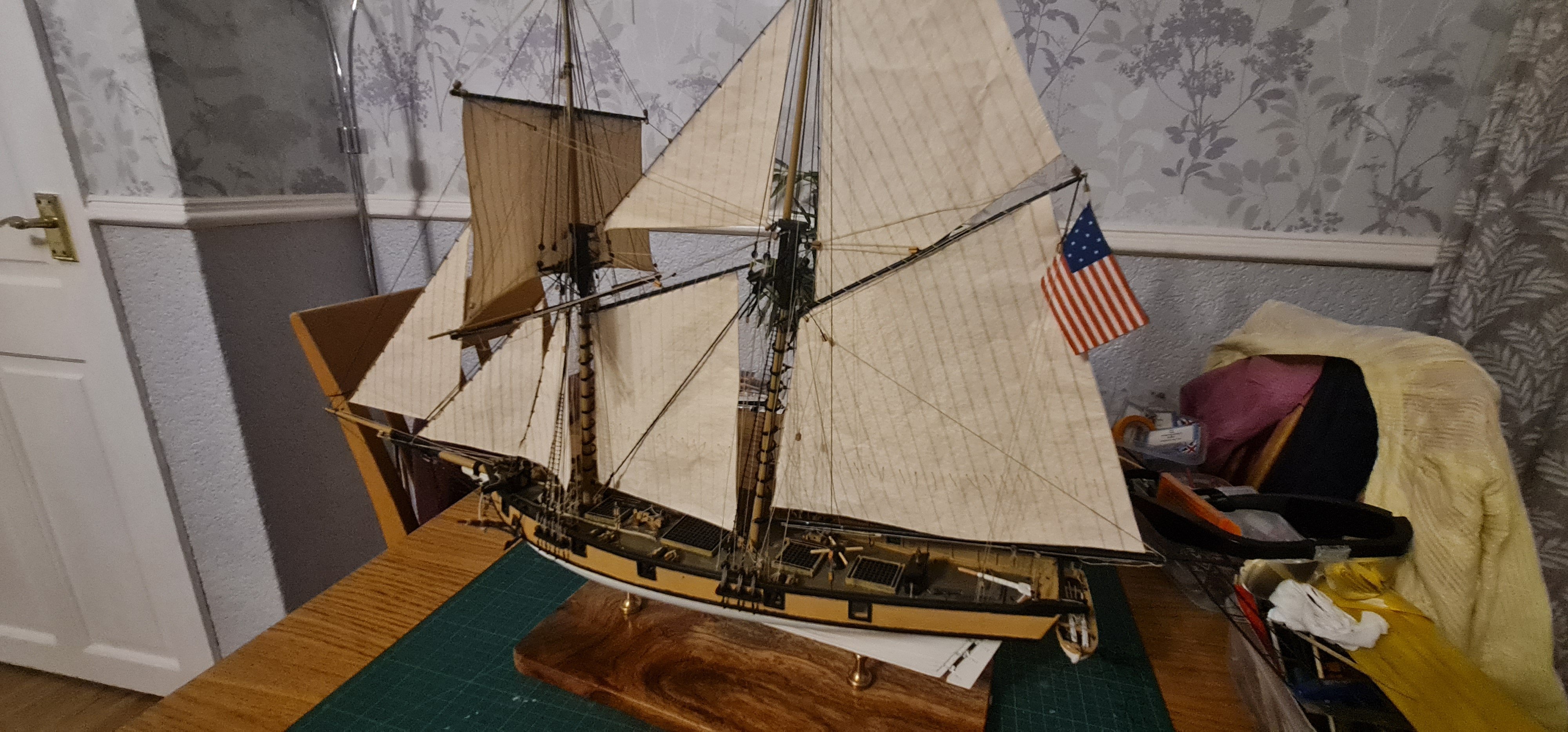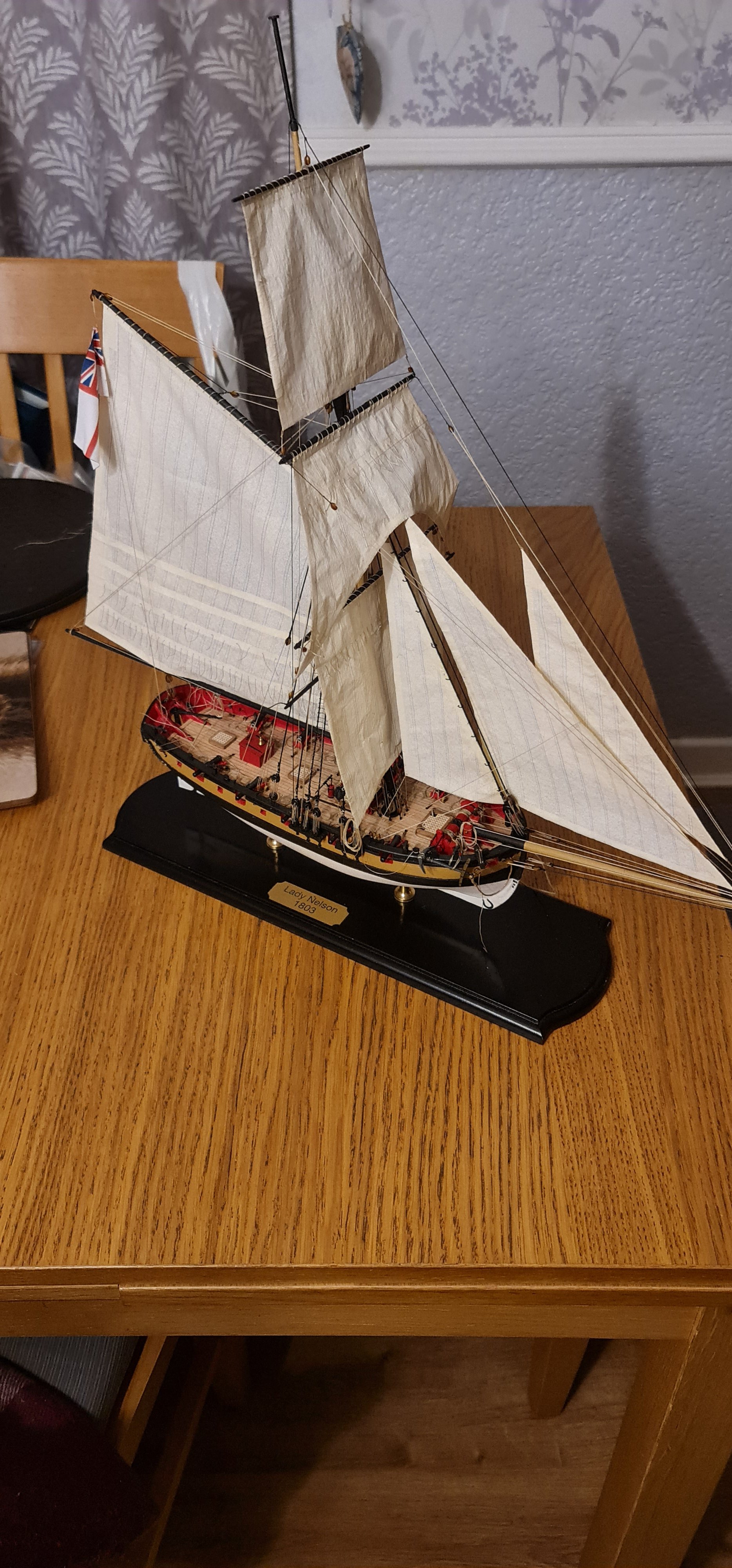 1. Hi Pitts, bit late only just seen your post. I used the Rigging plans for hms Alert from here https://drive.google.com/drive/mobile/folders/1ZBOCp4Te0XlSfVsxf21e5k_JthVS_xX-?usp=sharing and made the sails from model aircraft tissue (silkspan). Hope this helps