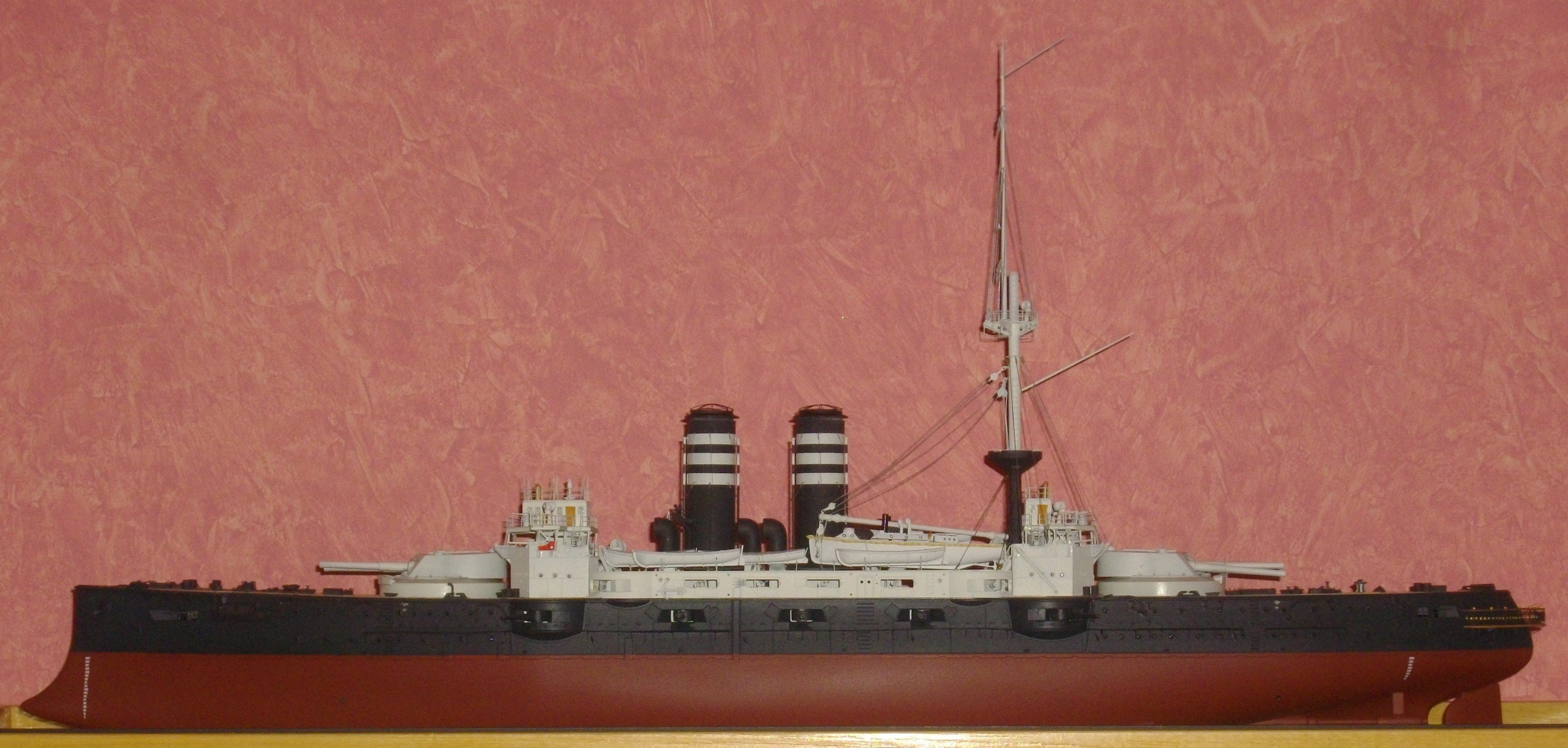 6. Before finishing the funnelstays I placed 4 laddders to the fore funnel platforms. See you in the next update.