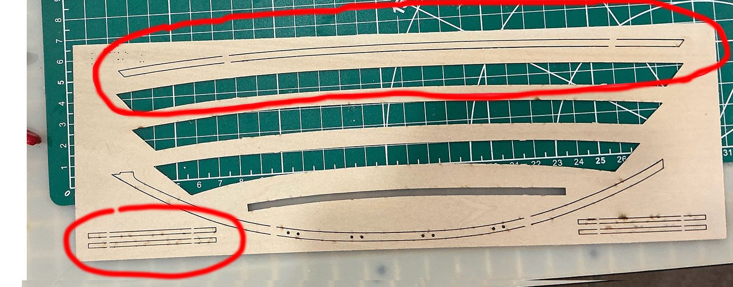 I used basswood strips. I gotta say, having a labeled view off all of these lasered sheets would have added 2 pages to the instructions PDF and would have been immensely helpful.
