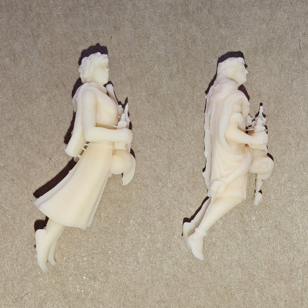 Alright, here's a detailed walkthrough of how to make the slot in the figure using Onshape: 1: make the prow template I am sure there are many ways to do this, but this is how I do it. I draw the shape in QCAD, using the scaled drawing as reference: You can do this in any CAD program. Make sure all the endpoints touch - it needs to be a closed shape to enable the extrude operation. Then I make a new project en Onshape and create a 'Sketch': You have to pick the plane to sketch on (I pick the front, it dosn't matter) Then, before completing the sketch operation, click the DXF function at the top right: Import your prow 2D CAD file: click the tick mark on the sketch function to complete this: Choose the central shape (not the lines) and use the extrude function (top left): Here you pick the depth to extrude, the thickness of your keel, but give it a bit extra, othewise bleeding of the pixels during 3D printing will likely make the cut to shallow to fit. You must experiment with the correct thickness. Then export this 3D keel shape as an stl: Import this and your figure into the slicer (you can do it in onshape as well, but I am not good at moving things around in that program, so I prefer the slicer). Adjust the position of the parts to fit and combine the parts (at least in Lychee, you have to do this to export both in the correct relative positions): Export the object to an stl: 2: make the slot with the boolean function in Onshape Now we need to import this model into Onshape. From the main menu, click the create>import Import your stl - the progress will appear in the notifications tab (a bit counterintuitive): When it is done, you get a link to your imported file: Now we are redy to do the boolean. It is at the top bar, two intersection circles icon: As it says, you can do three types of boolean operations, union, subtraction and intersection - we need to subtract. The prow is the 'tool' and the lion is the target. You can have several tools operating on several targets, if needed. In my case, three lion parts appear - this is because I have two small, free floating bits of mane - normally you would just be left with one slotted figurehead part: Then you just export the part(s): I have seen instances where the boolean function fails - this happens if there are very extreme topologies as a result of the subtraction, but mostly, if you have so-called water-tight stl files, this just works like a charm. Let me know if there are any points that need clarification! BR TJM