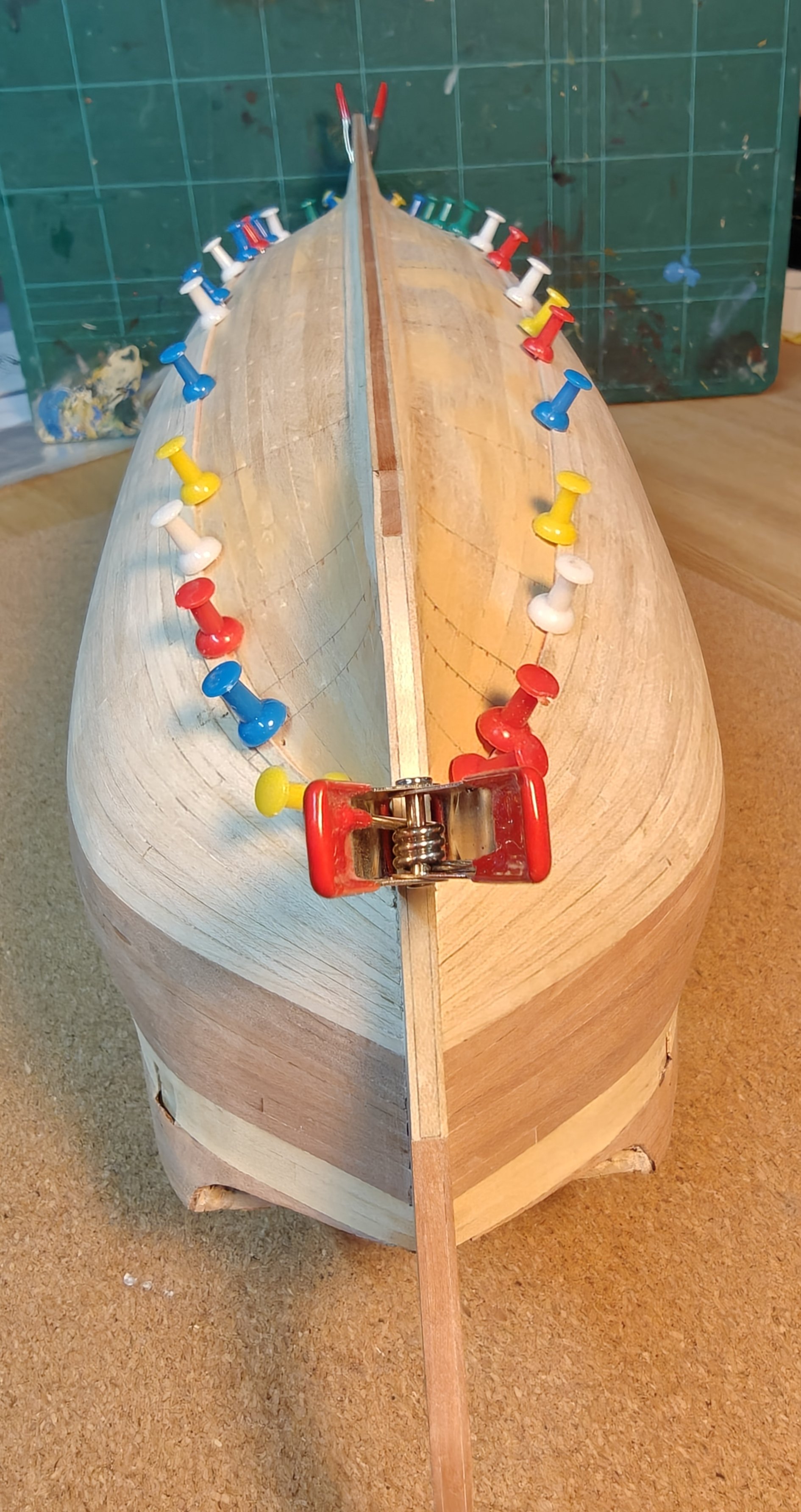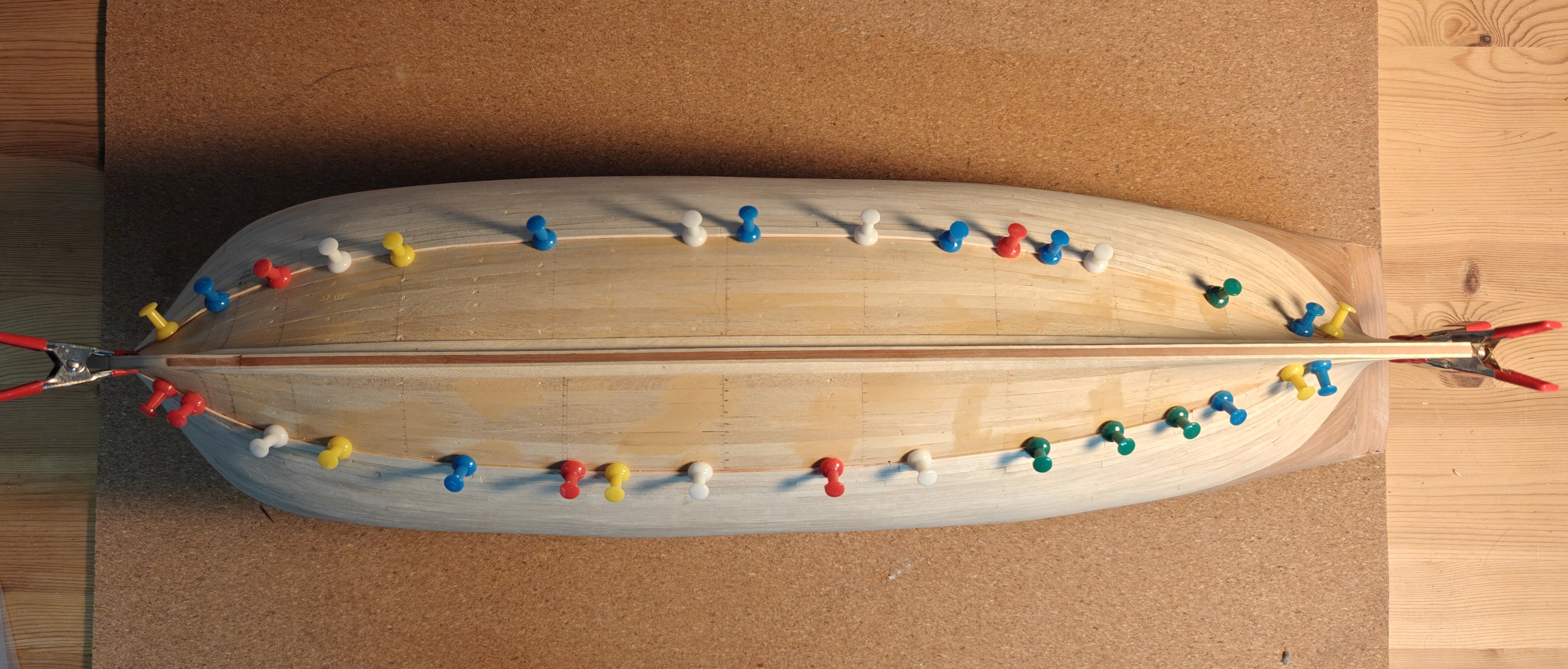 Just a quick update: I have finally managed to move on with the second planking layer. It is a pain to work with the maple and it is extremely time consuming to make the heavy shaping of every single piece of planking, with my silly idea of how to make an 'artistic' all-wood-finish hull below the waterline - this is not something I expect to repeat on future projects 😅. Here's the current state of affairs: 21 planks to go, but they are getting significantly easier now, closer to the keel. I hope to push through in the next couple of weeks snd get the planking completed. BR TJM