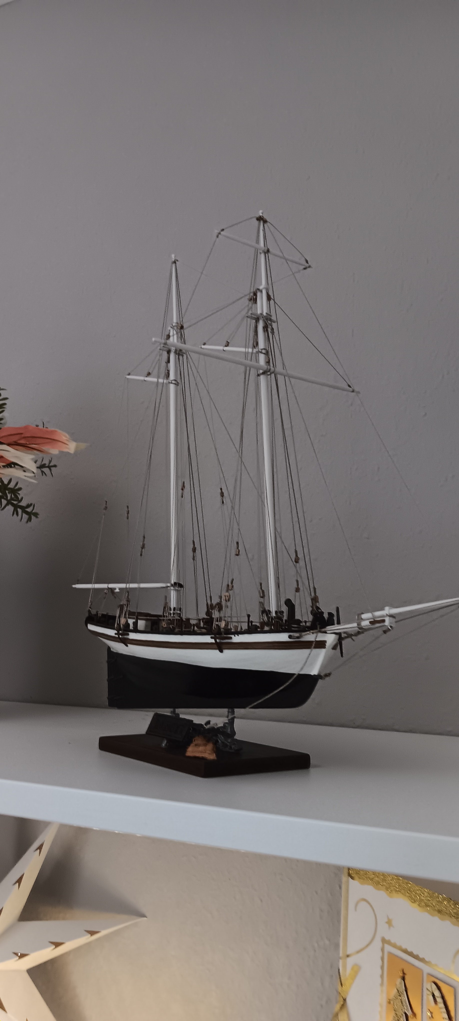Hello everyone, I would like to introduce you to a small kit from Corel that I have been working on for the last three months. As usual with Corel, the wood is of excellent quality and plentiful. The same goes for the rigging. However, I have to criticise the cast metal parts, as they are of poor quality and break easily. The construction plans are, as is also typical for Corel, somewhat unusual and require careful study. However, the assembly instructions are very detailed. The canvas, which I did not use, seems a little too thick, but is of good quality. However, I must point out that the representation of the gaff sail in particular cannot be used as a template, as it is simply incorrect. In addition, the construction plan contains a somewhat hidden reference to the yards, but does not mention the sails. All in all, it is a nice kit that is fun to build, but not necessarily recommended for absolute beginners. However, this is typical for this manufacturer. Best regards Translated with DeepL.com (free version) Übersetzt mit DeepL.com (kostenlose Version)