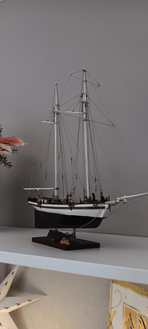 Hello everyone, As you can see, the yards and bowsprit are also finished. So all the woodwork except for the dinghies is done. But the whole thing is going away for now, as I have more important things to do for the next three months. I recently went to the furniture store with the Admiralty ‘just to have a look’. After two leisurely cups of coffee, a small stack of papers was placed on the table with the comment, ‘Sign at the bottom right.’ Now I have to tear out our 45-year-old kitchen and, after so many years, renovate the space, which makes sense. Before that, I need to set up an outdoor kitchen in the courtyard behind the house, as I would like to continue to eat. So if I find time to do some DIY in between, I will probably continue working on the Ranger. I would like to wish you all a Merry Christmas and a Happy New Year. Translated with DeepL.com (free version)