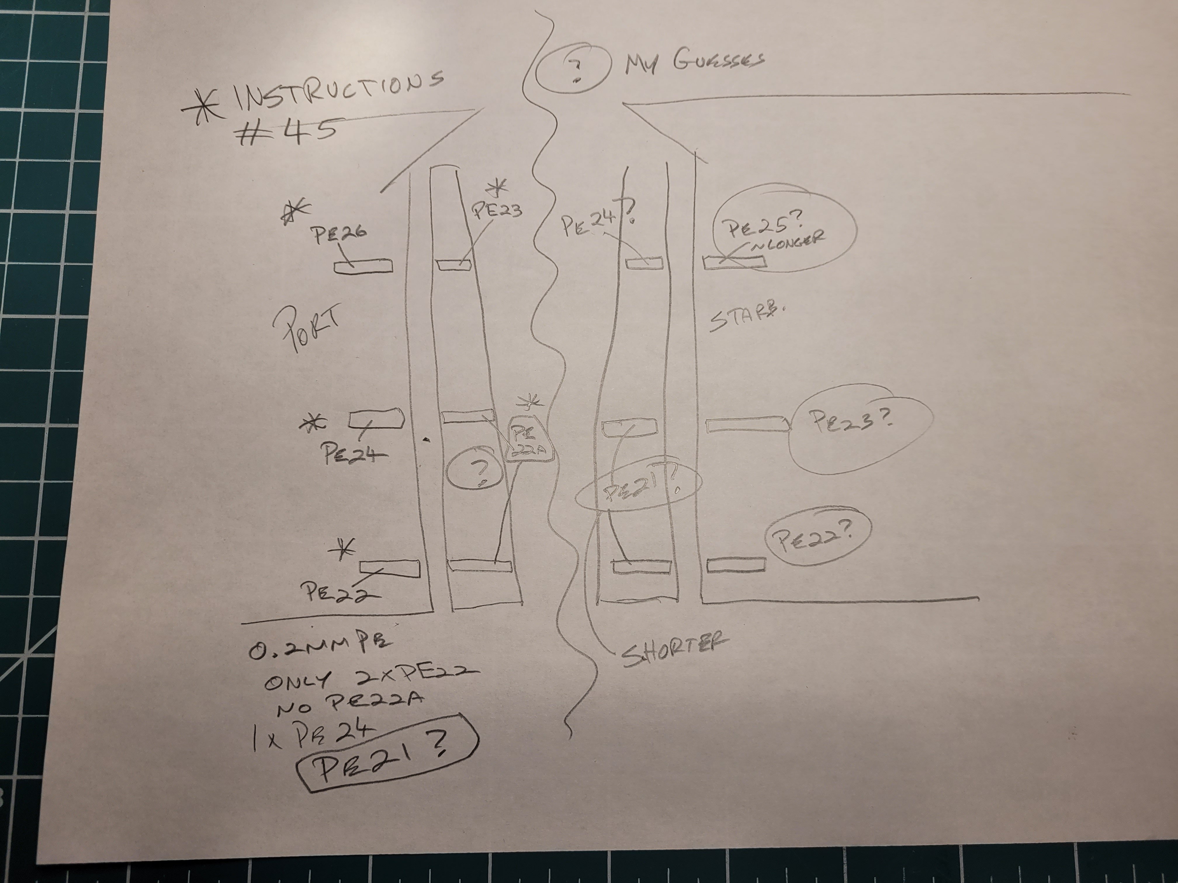 Darned if I can figure out the PE parts placement for the stem/rudder hinge parts. Others haven't mentioned it, I looked at 3 or 4 other build logs, and they obviously figured it out, so clearly I'm an idiot. So if anyone can help this idiot, much appreciated. The instructions pic below shows portside only. But even assuming the numbers match for starboard side, there's e.g. no PE22a and b. The PE fret below as well, also my lousy sketch of the parts portside per the instructions, along with my guesses so far what matches what starboard side. If anyone can straighten me out on this, much appreciated. Nick