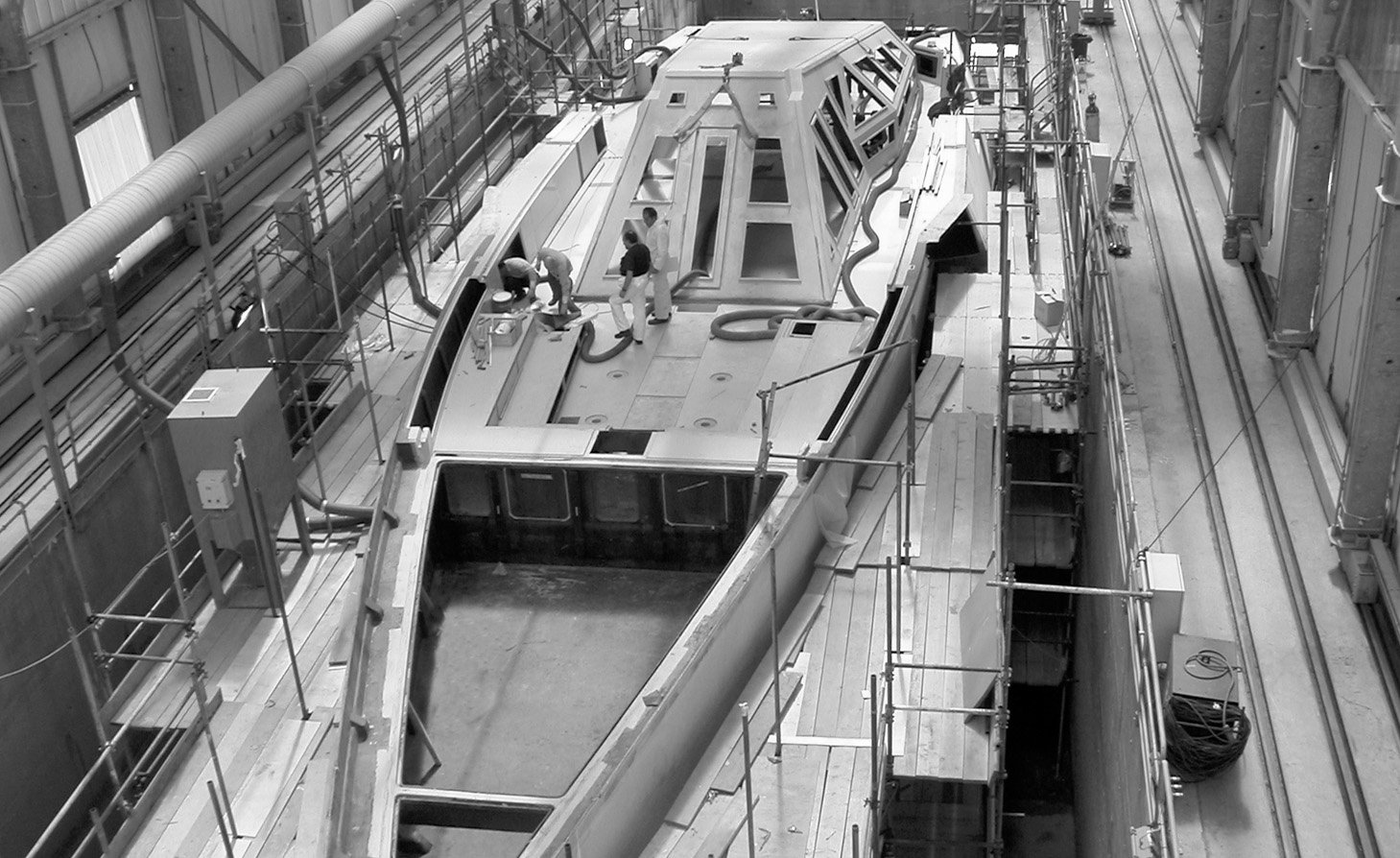 I finished the building of the handrails, along the hull. This was done with styrene strips as described in the previous post. The model almost looks like the real thing.... 🙂 I increased the area of the bow, by filling up about 2 additional centimeters: The railing is not too bad and should give the illusion, once painted like the hull: At the stern, the railing goes all the way to the boarding deck. The flat pieces are the covers for the winches used most of the times, on the Mediterranean sea (Med mooring). There are still some minor details and a lot of sanding to add to the hull, but it will be ready for a first coat of primer soon. Now, we need some better weather....not 29-32 degrees F. Yves