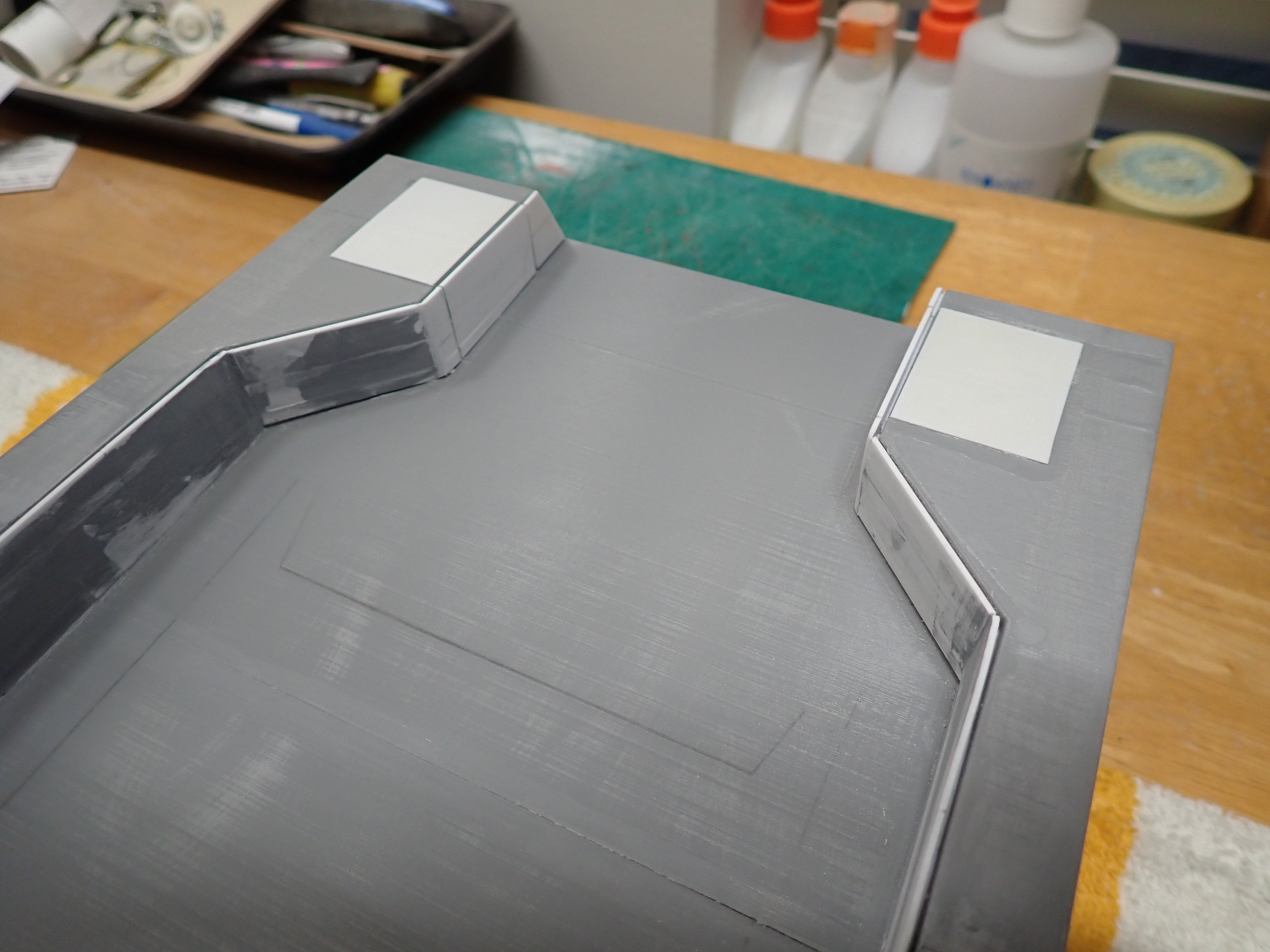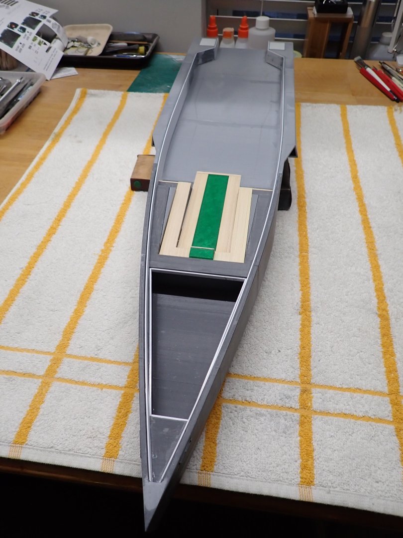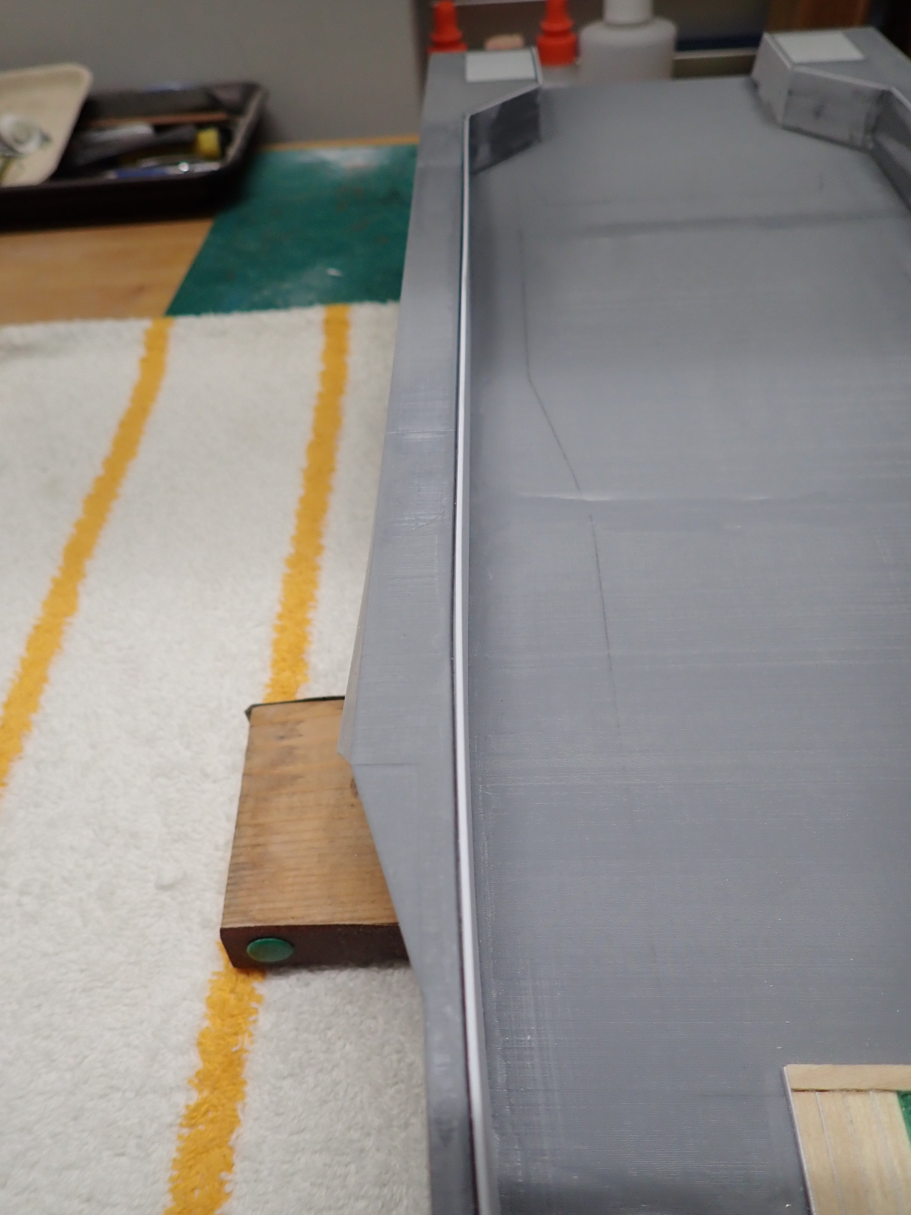 The connection with the third module is done: Besides the slot for the deck window, the third module does not require much in term of modifications. Below, you can see some dim light peeking through the green windows of the deck: Elegance of the hull: I am curious to see how the planking will look on the deck. Thus, using basswood strips of 3.0 x 1.5 mm and polystyrene strips of 025 x 1.5 mm , I am starting the delicate planking. The caulking is made in white on the original yacht. Again, using TinkerCad, I am creating two wedges to compensate for the incorrectly angled seat backrests around the dining area. These two wedges will be covered by planks. It is a constant struggle to make this hull work with the real prototype. I am also printing some cushions that will be used around the dining area: And that is where we are today: I hope you enjoy this model. Yves