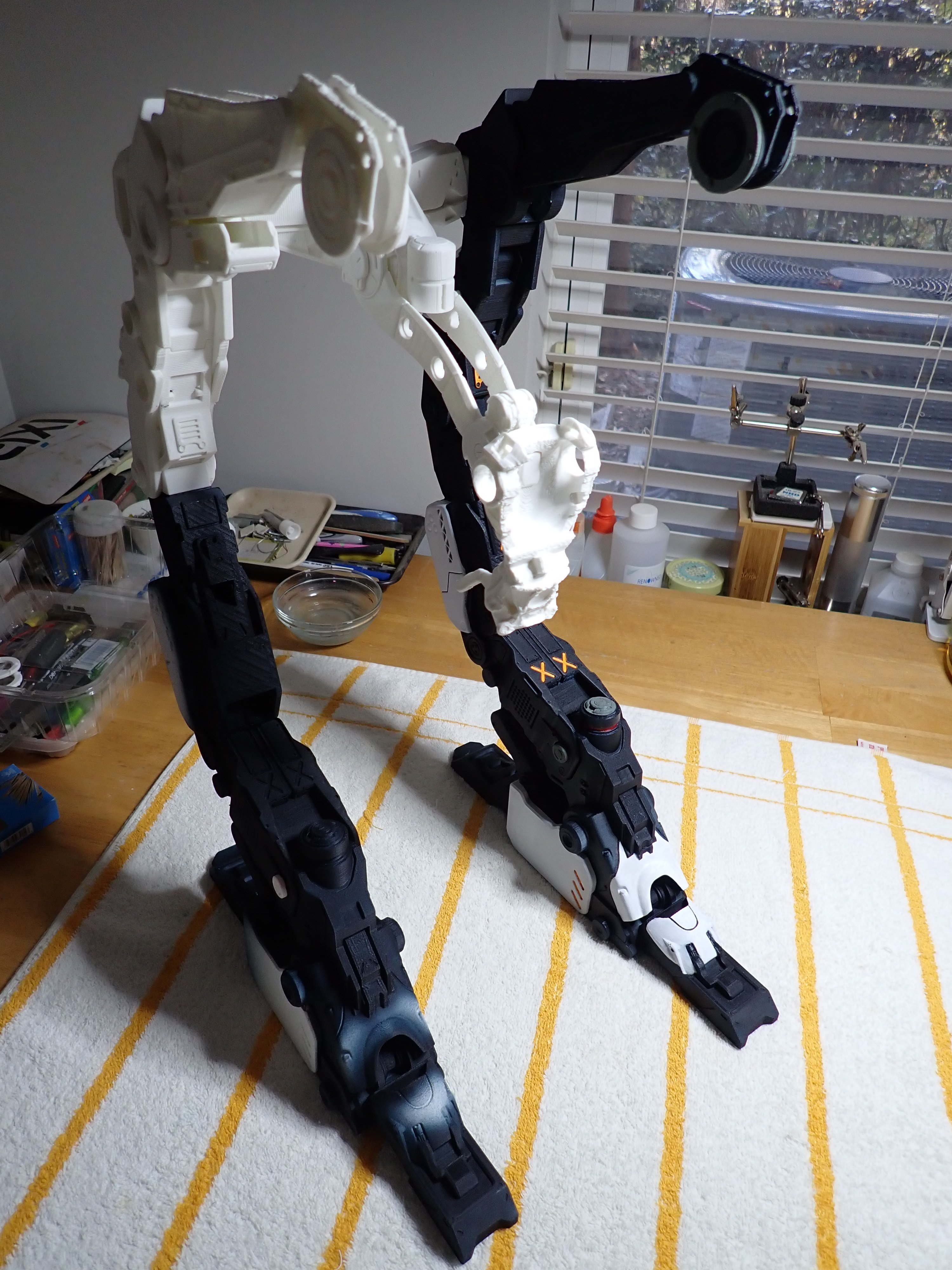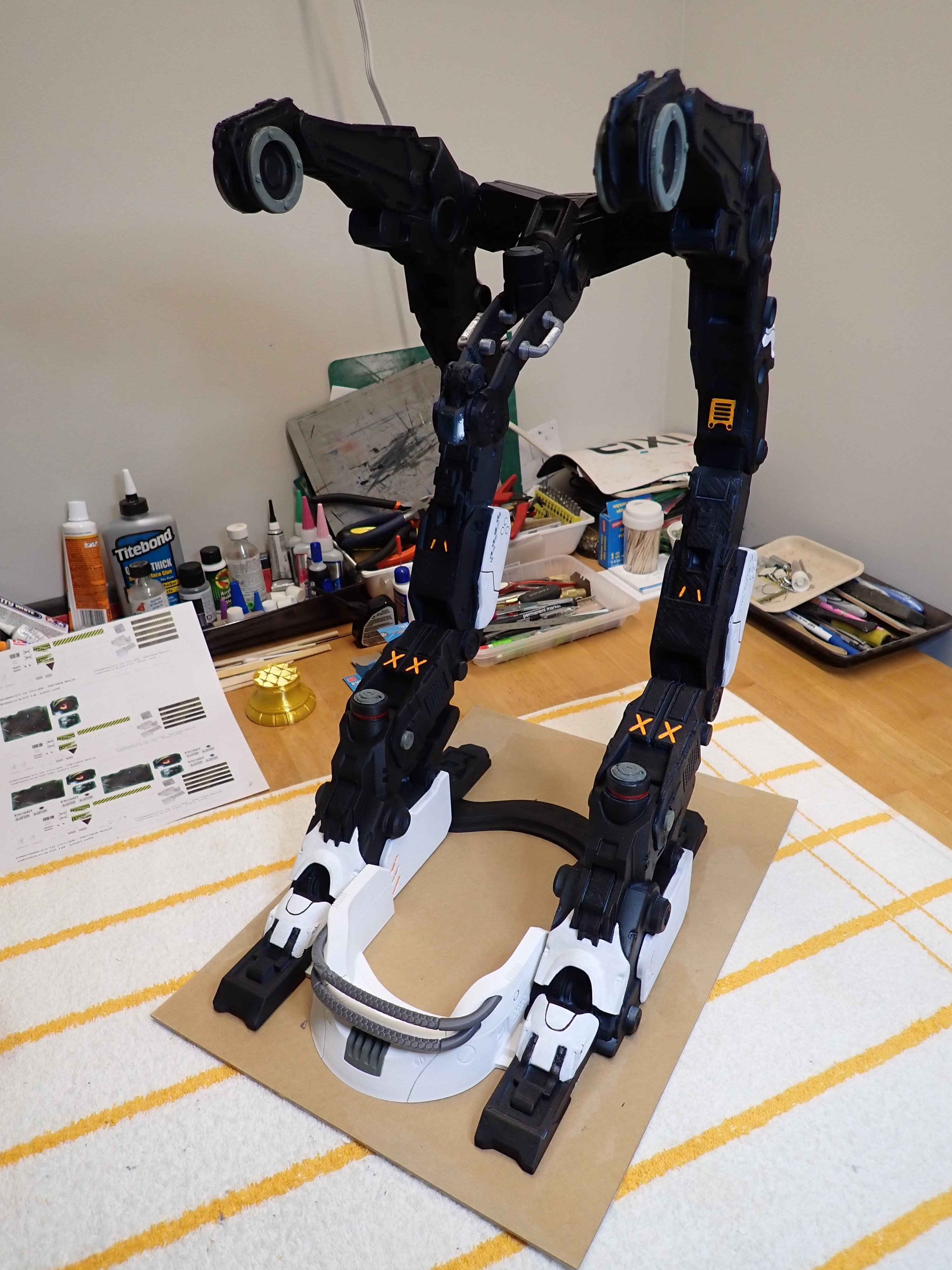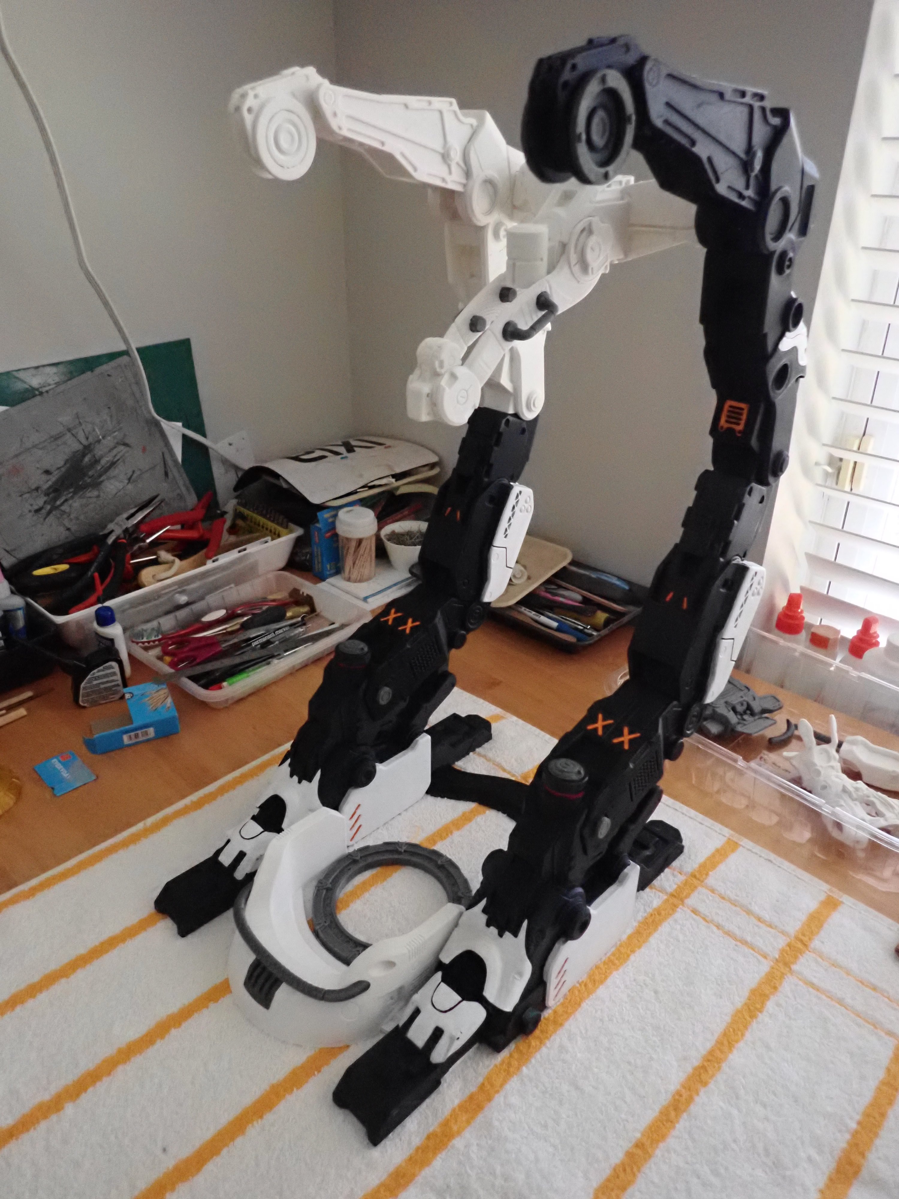 Another crazy project that I have always admired: the Starcraft Adjutant Artificial Intelligence from the video game Starcraft. I have never played the game and never will, but I find this creature interesting. It is basically some kind of very powerful artificial intelligence capable of predicting and strategizing events. The original model is located on CGTrader and is a real masterpiece. The designer spent an enormous amount of time creating a very large number of parts and making sure they fit perfectly, requiring very little glue or filing. The AI creature is ominous in itself, but the "Hangar" or structure to hold it, is almost nightmarish in its conception. One may wonder why such a large structure and so many pipes are necessary to hold a thinking head computer.... But the whole interest of the model resides there. For me, the challenge was printing large parts with filaments and small parts with resin, which I have never used before. The learning curve is quite steep but that is what makes it interesting. The "Hangar" is pretty much entirely printed with filament and the hoses, tubes and AI will be printed in resin, for ultimate details. The original kit comes in the scale of 1/5th and makes it for something quite large. I decided to reduce it to 1/6th which is a standard scale for resin figures of girls and other famous and fiction characters. Each part is reduced to 85% of its original size for Filament and 89% for Resin. Yes, I am finding out that resin shrinks and parts printed at 85% are too small to match their equivalent printed in filament. A lot to learn and adjust..... Above are all the parts required to build one side of the "Hangar". The hangar is starting to be erected: All the parts are sprayed with a mix of Tamiya acrylic Royal Blue and Matte Black. The white is the flat white from Tamiya. In the picture above, you can see the back of the AI creature attached to its holder. I printed a "Stargate" circle for the base, where all the hoses and wires will go, but I may change that. I do not think it matches the cybernetic look of the entity. Upper side of the "Hangar". I will keep that large bundles, disconnected from the legs, for as long as I can. The two following pictures are giving you an idea of the humongous size of that structure: As I mentioned, I recently acquired a resin printer, an Elegoo Saturn 4 16K and its washing/curing station. Elegoo was having a special deal for the Black Friday and I decided to jump on the crazy bandwagon of resin printing (which so far is working like a champ). On the picture above, you can see three attempts I did for printing the back of the AI creature: On the right is a resin print at 85%. In the middle is a filament print at 85% and to the left if a resin print at 90% of the original size. I think the sweet spot is at 89%. Yves
