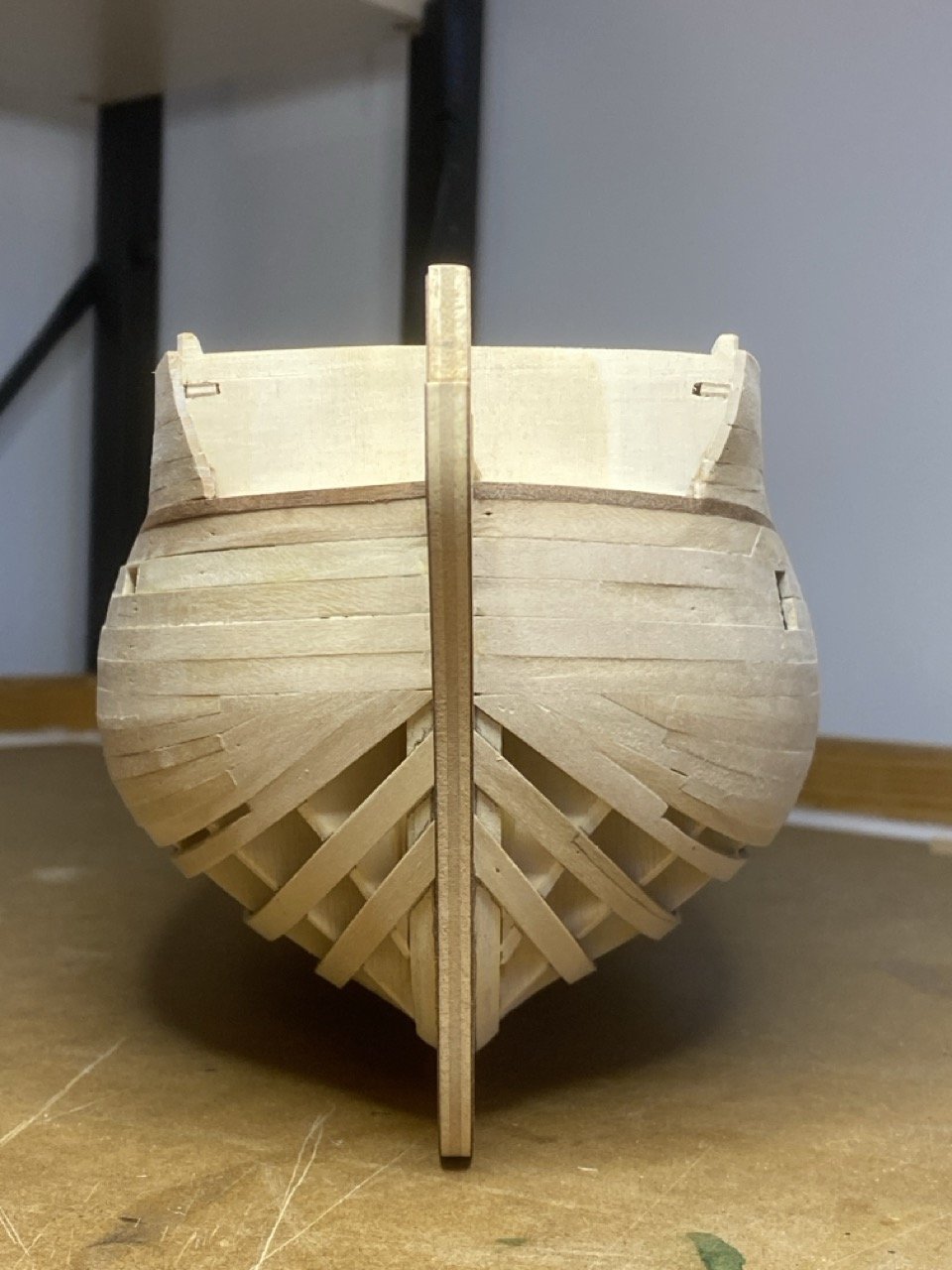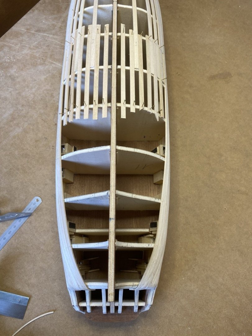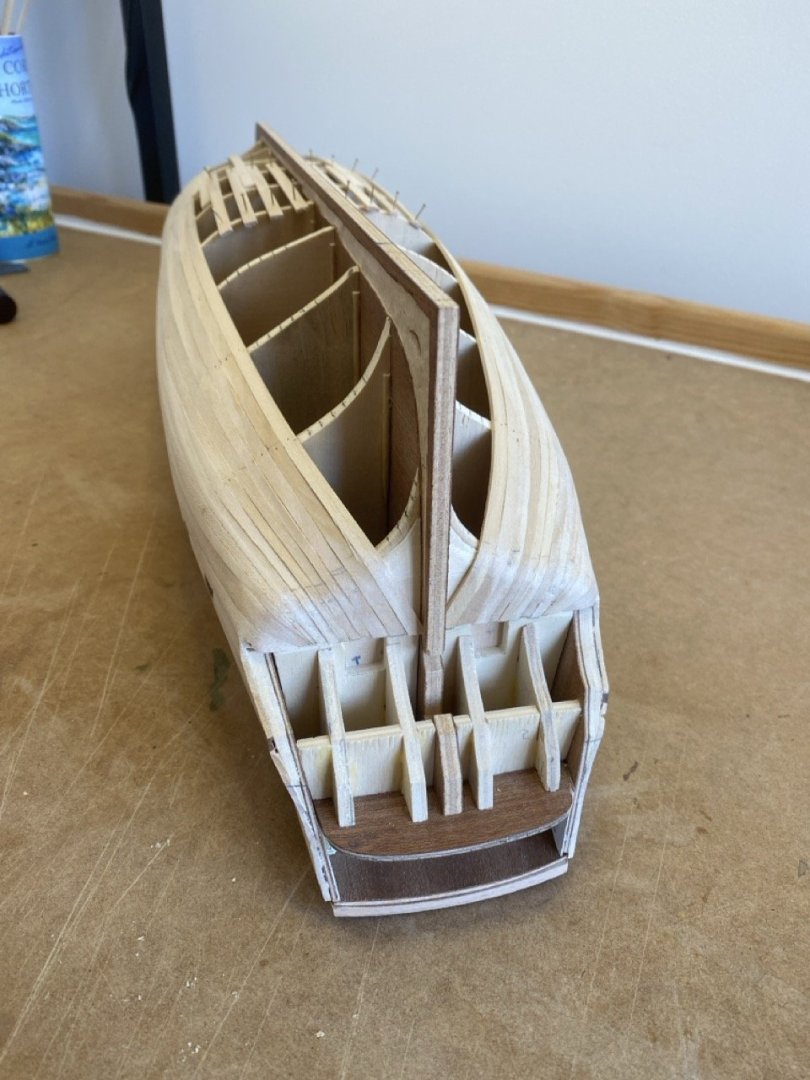 Hi Frecap and Nearshore... many thanks for both your replies above. The photos are extremely useful. Frecap, I will definitely consider thinning down the stem and the sternpost - I like the visual effect. Nearshore, I think I'm going to extend the inner hull planking to very near to the sternpost but will probably stop just shy of the endpoint. I will confess that the cutting and fitting of the inner hull planks that transition from following the bulwarks to lying flat on the hull are quite intimidating so I'll probably dry-fit and trial them quite a few times before finally gluing. I'm still very new to this!!!