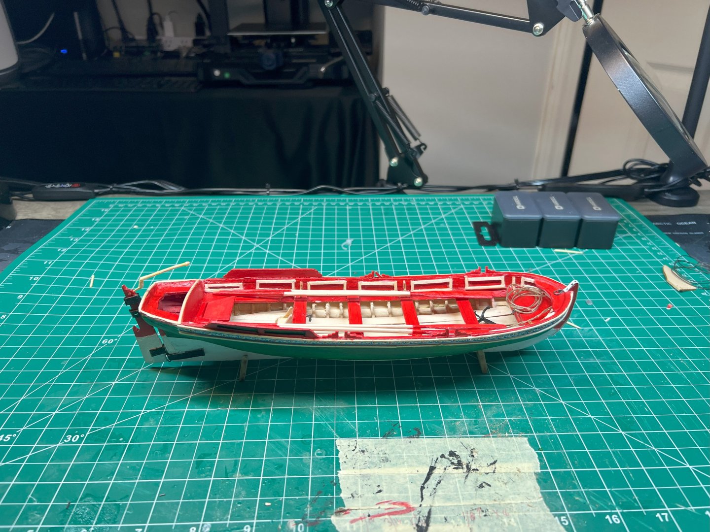 I had issue with my phone being able to connect to my computer so I could download pictures. I was in the shipyard working on the Pinnace and also started the HMS Cutter Sherbourne. I have been really enjoying the wood craft. I was able to take out some of my ape hand mistakes and come out with a semi decent hull. Inside was ok, but once I started putting some of the inside parts and detail, it came together. Not sure what happened here, but I was building and forgot to take pictures. But it has been FINISHED and below is the final. I will try to work on getting the post for my new build. I know, yet another Sherbourne. I really love this one. I believe it is coming out much better that this one. However, I did learn a lot with the Pinnace, and its a bigger build with less fragile parts. My ape hands don't come into play as much.