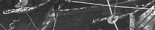 I really can not speak to how well hide glue works in ship modeling as I have no real experience with the more traditional kits and methods. I painted the bulwarks. Not having access to miniature four dimensional dock yard workers, I figured it best to paint things before gluing. My dad had some old paints from various projects. Since I am making this up as I go, using them seemed like the simplest option. The top of the hull, where most of the gouges are was painted with a flat black graphite color. I may make some of the hatches open. The area under the forecastle, behind the galley and crew quarters should disappear in shadow. I am still contemplating modeling some blocks to suggest the capstan winch. Will see what it looks like when I get things together. The milled down sheets from the pipe organ swell shade blades, are not wide enough to cover the whole deck. So I did them in sections. I cut separate thicker pieces for the long deck stringers. Since I had the graphics for some deck stringers. I cut some more without the knee braces. This should help with the installation as there is warping of the decks in three directions. Interesting that when glued up, there are optical illusions which make the straight lines look curved and the curved ones straight. There is a large photograph on the door of the museum to the Forester room. I took a shot of it with my phone. (there are some reflections on the glass.) This shows a bit fuller bow than the model was carved. The station templates do allow for more thickness in these parts. This also shows the ship stripped of most of the fittings. What it looked like shortly before it burned. In the photos, and my recollection the decks were covered with all sorts of junk. The owner at the time was the sort who did a lot of itinerant jobs about town. For the most part hide glue does not need a lot of clamping. I did find that where the forward parts do need to wrap around the bow, that the wood tended to spring back a bit. So I used some telephone wire scrap from a pipe organ relay. When I pre-bent the end of the bulwarks they broke at where I joined the cross grain rails. So I clamped this back after installation of the side and deck structure. Some of this will get filled and sanded so the planking can be laid. The width of the deck was trace from the top view well for shaping these parts. I did cut some test planks from scrap. These feel a bit thicker than scale. For the most part I am finding the parts to align with the traced plans. -julie