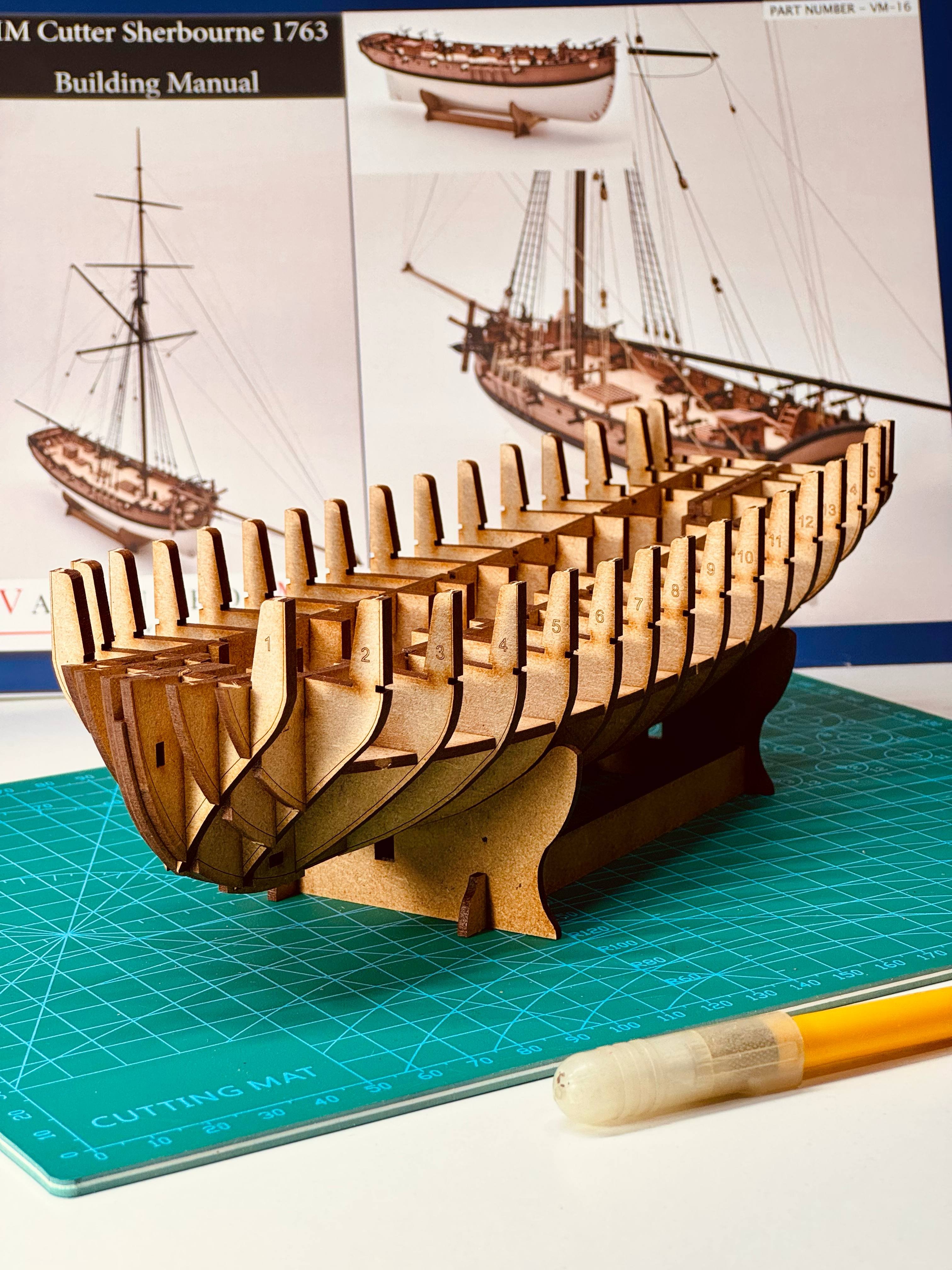 Hello, These are the first steps of my HM Cutter Sherbourne build. The kit looks fantastic in the box: lots of detail and high-quality parts. So far, the hull skeleton went together perfectly – everything fits like a glove. This is my first wooden sailing ship model. I don't have a lot of time for modelling these times, but but I’ll try to post regular updates—even small ones. I expect the hull planking and the rigging will be the trickest steps for me. Wish me luck – and feel free to share any tips or advice! I’ll definitely appreciate it. 😊