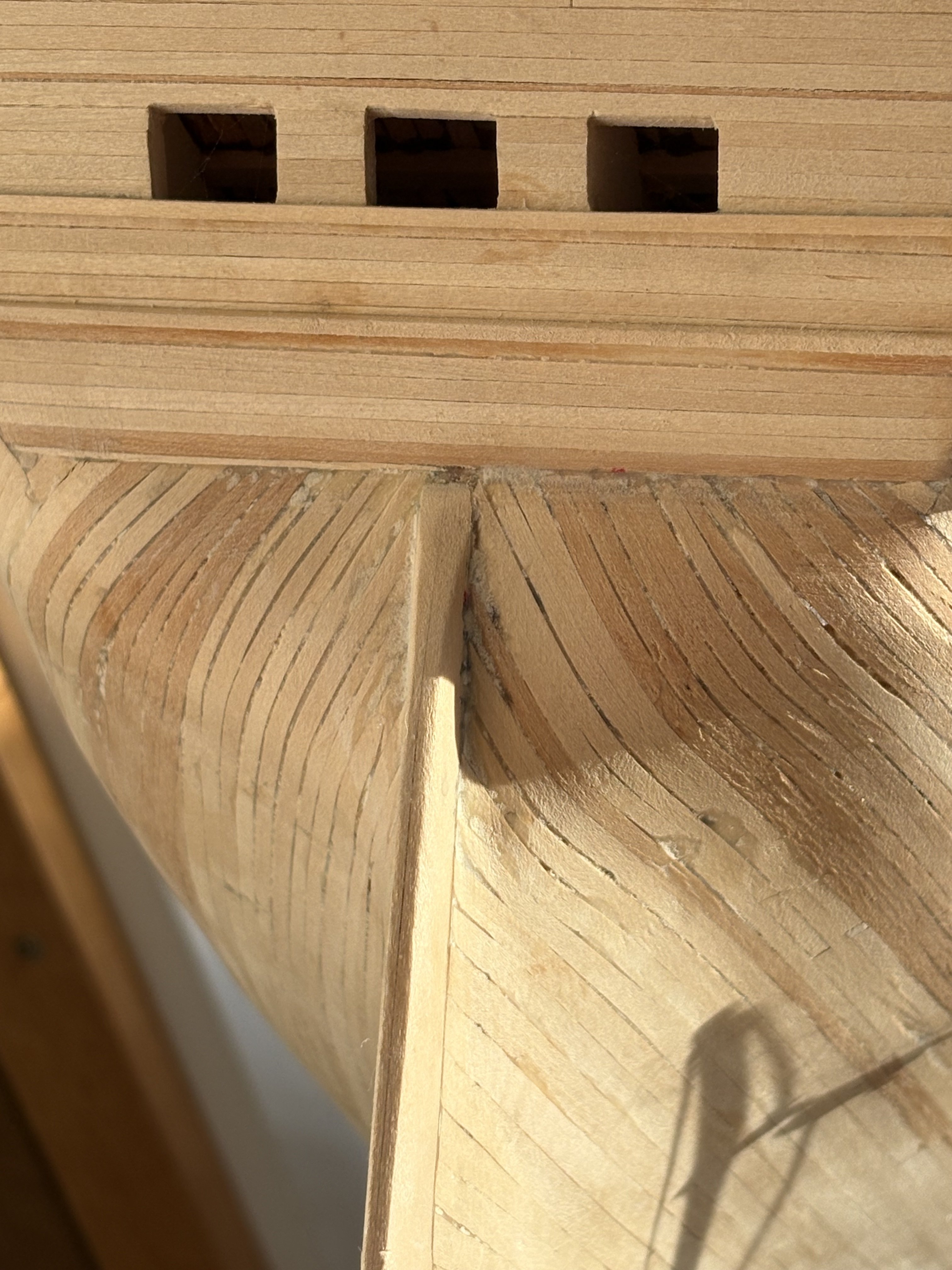 Ellie life will get easier (if you plan to continue with this hobby) if you buy 2 very necessary tools, an electric plank bender which as soon as you soak the basswood put it in the form and it will steam bend it to sharp curves ( I included pictures of the stern of the Constitution that required critical bends made very easy with the steam bender) and a chopper sold by many different companies besides North West Shortline which I got years ago ( It allows you to cut multiple pieces precisely all the same length in seconds and this one is on eBay now and is hard to find ) Rick