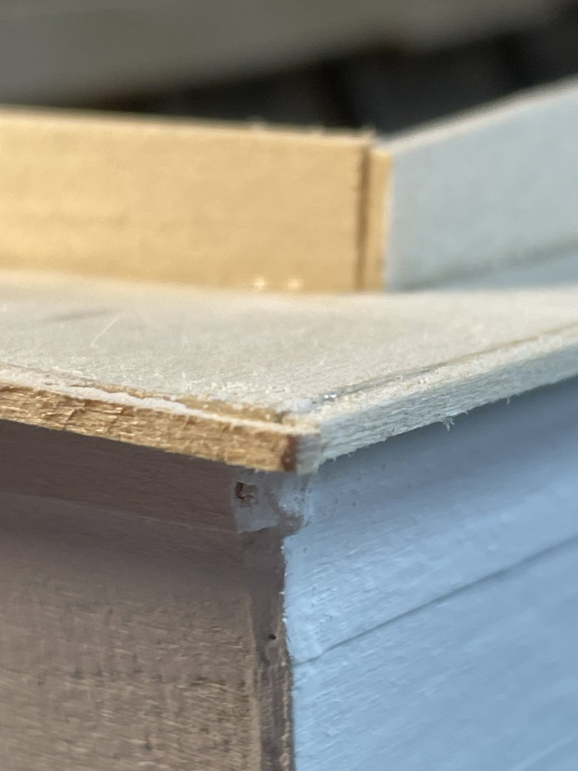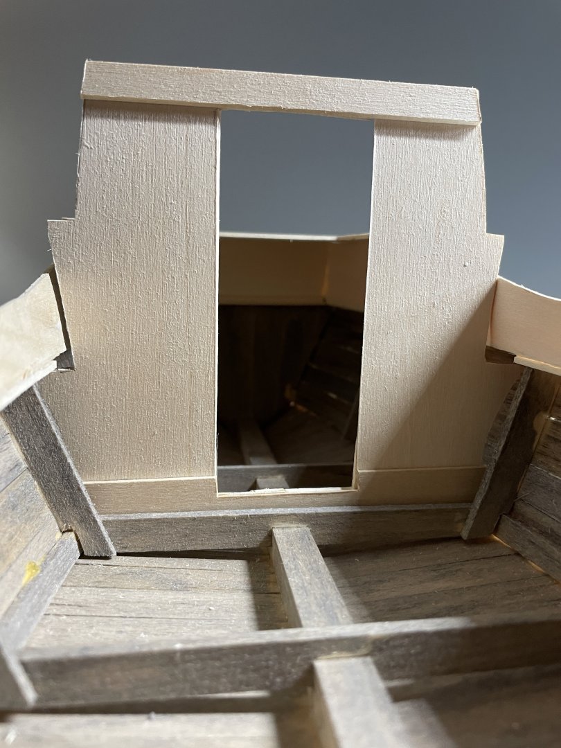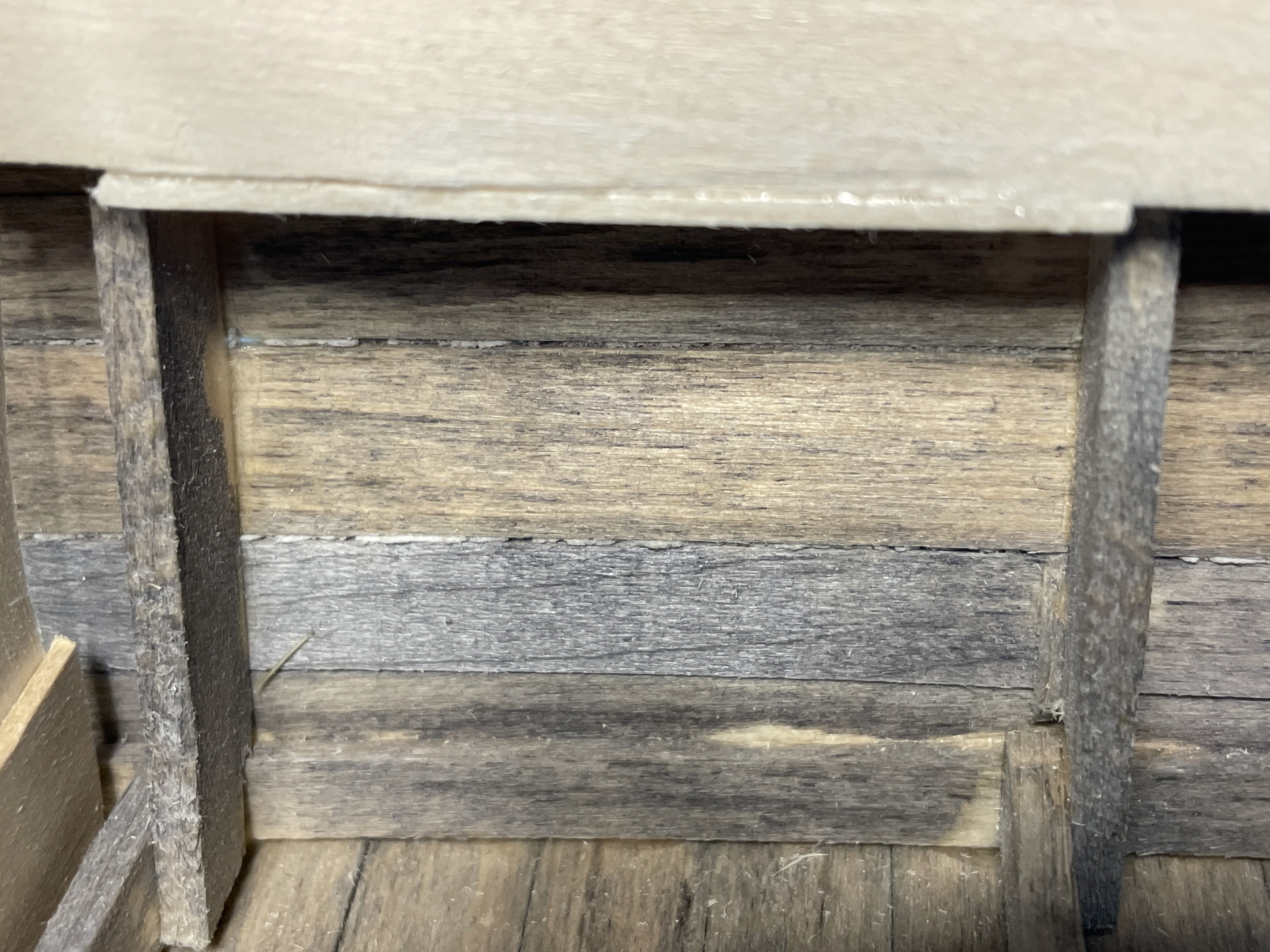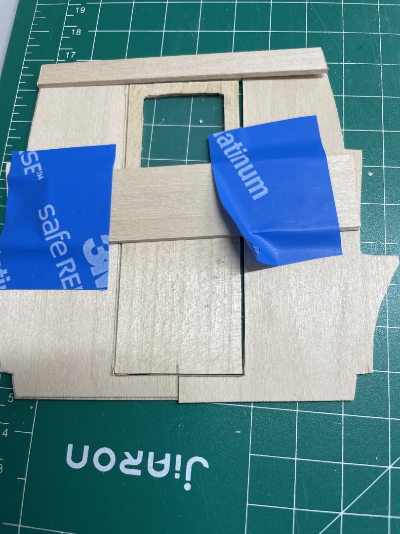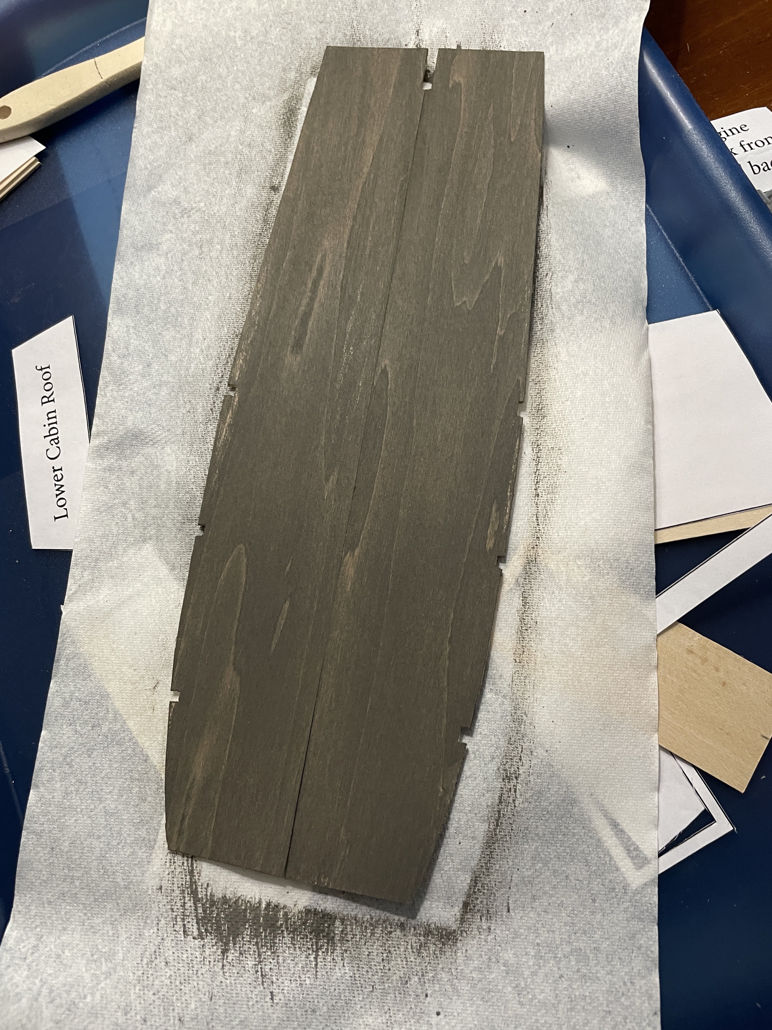 Next step is building the cabin. And looking at the instructions that’s all there was “build the cabin.“ Needing to have the cockpit floor installed before the cabin, I fit that and stained it using Graystone (General Finishes). I also stained the interior hull Aged Barrel (Minwax). I’ll need to clean up the bleed through on the outside of the hull. Build time 1 hour.