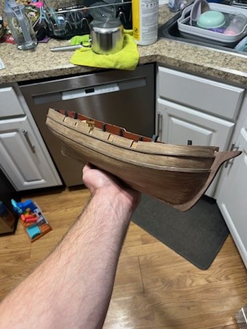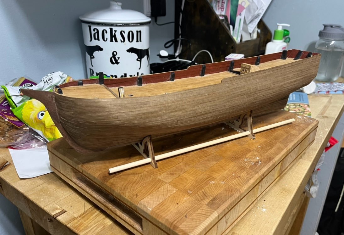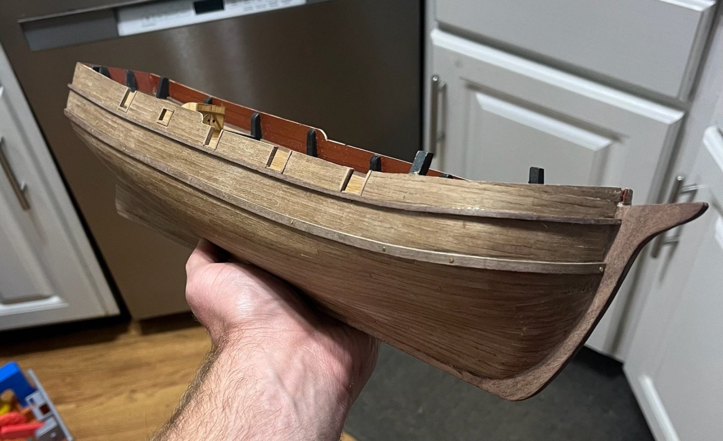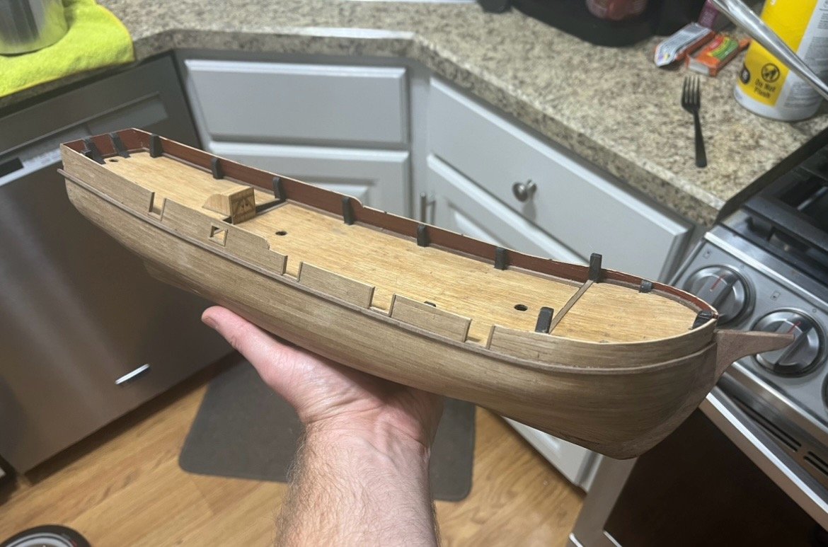 1. First Time doing any type of model. I chose the Amati Adventure, i am taking some liberties with the build with changing some small aesthetics. Not going for something completely period accurate but something i can be proud of and that is nice to look at. All of the pieces that are plywood i have remade from walnut to match the hull, with plans to do the rest. I remade the keel, rudder, and rails on the side of the hull from walnut.