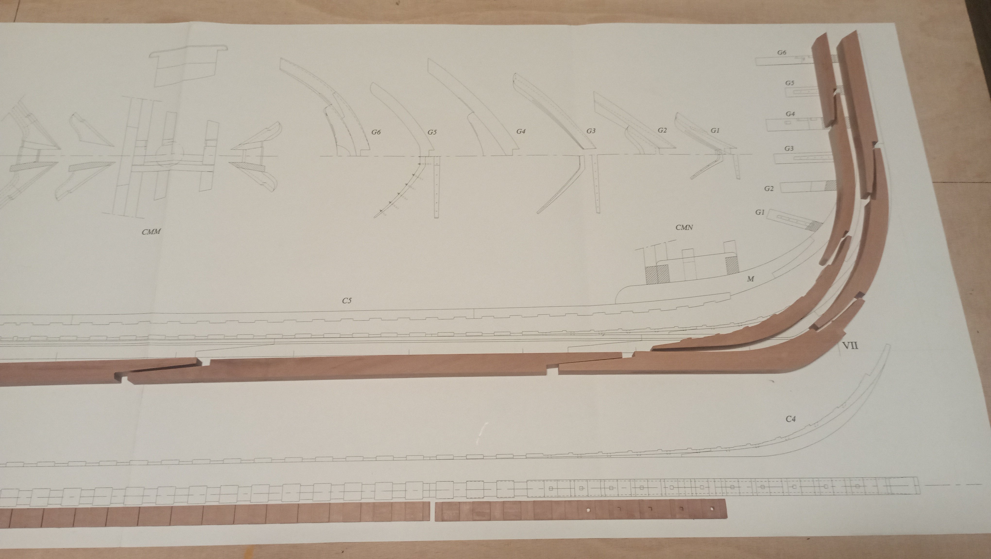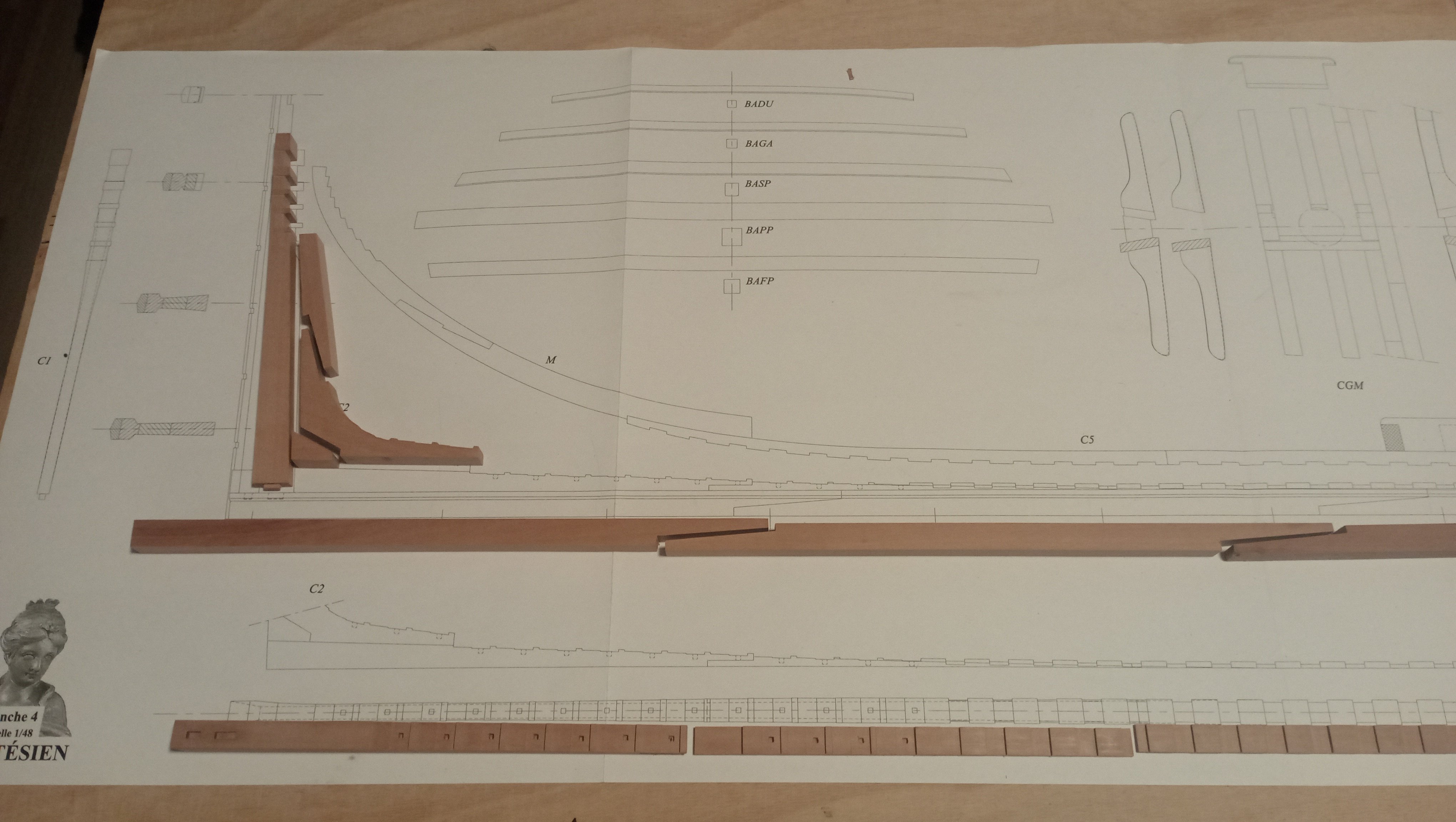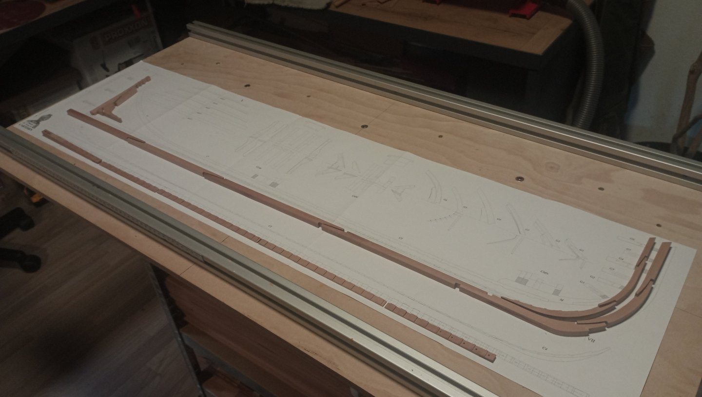 1. Hello everyone! I've been registered here for quite some time, browsing and marveling at this fantastic forum. Now I've decided to share my new project with you all. My name is Andreas, I'm 40 years old, and I live in beautiful Bavaria, Germany. Model building in general has been a part of my life for as long as I can remember, and at some point, I became fascinated by shipbuilding. I started with a kit of the Lady Nelson, followed by the HMS Fly. I then switched to frame-based kits... and built the HMS Alert. I realized I wanted to move away from kits and build my ships exclusively from plans. This February, the time had come, and I began building the La Vénus in 1:72 scale, using plans from Ancre. The project was completed last week. And now the next voyage begins! For several weeks now, even during the construction phase of the Vénus, my next project was already planned, and I acquired the plans and materials. I'm excited to share this project with you. The initial work was completed this week. If you've previously built on a 1:72 scale, you'll be literally overwhelmed by the size of this ship... The primary material is pear wood. Die bisherigen Arbeiten: https://www.segelschiffsmodellbau.com/t9964f1434-La-Venus-Franzoesische-Fregatte-in-nach-Plaenen-von-Jean-Boudriot-amp-Hubert-Berti.html https://www.segelschiffsmodellbau.com/t9791f193-HMS-Alert-Trident-Model-POF.html https://www.segelschiffsmodellbau.com/t9649f161-HMS-Fly.html Gruß Andreas