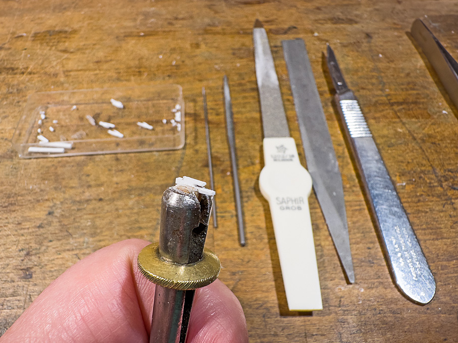 Thanks, gentlemen for your encouraging words ! Of course, acrylic glass was my go-to material. The first one came out ok, but then the second one snapped, and the third one jumped into some black workshop hole, when almost finished 🤬 ... I was too lazy to pull out the table saw and cut more acrylic glass strips, so I grabbed some suitable polystyrene strip and gave it a go. Acrylic glass machines and files/sands almost like metal, but small parts are rather brittle. When machining polystyrene, one has to be cautious to not overheat it, but it does not file very well and when sanding it leaves some 'fuzz' behind. Scraping with a scalpel takes care of that. However, being softer, it als more foregiving when handled. My concern is, that the softener in polystyrene will diffuse out over the decades and make it brittle. I also breaks down when exposed to UV-light, while acrylic glass largely remains unchanged over many decades. However, when painted, the risks are much lower.