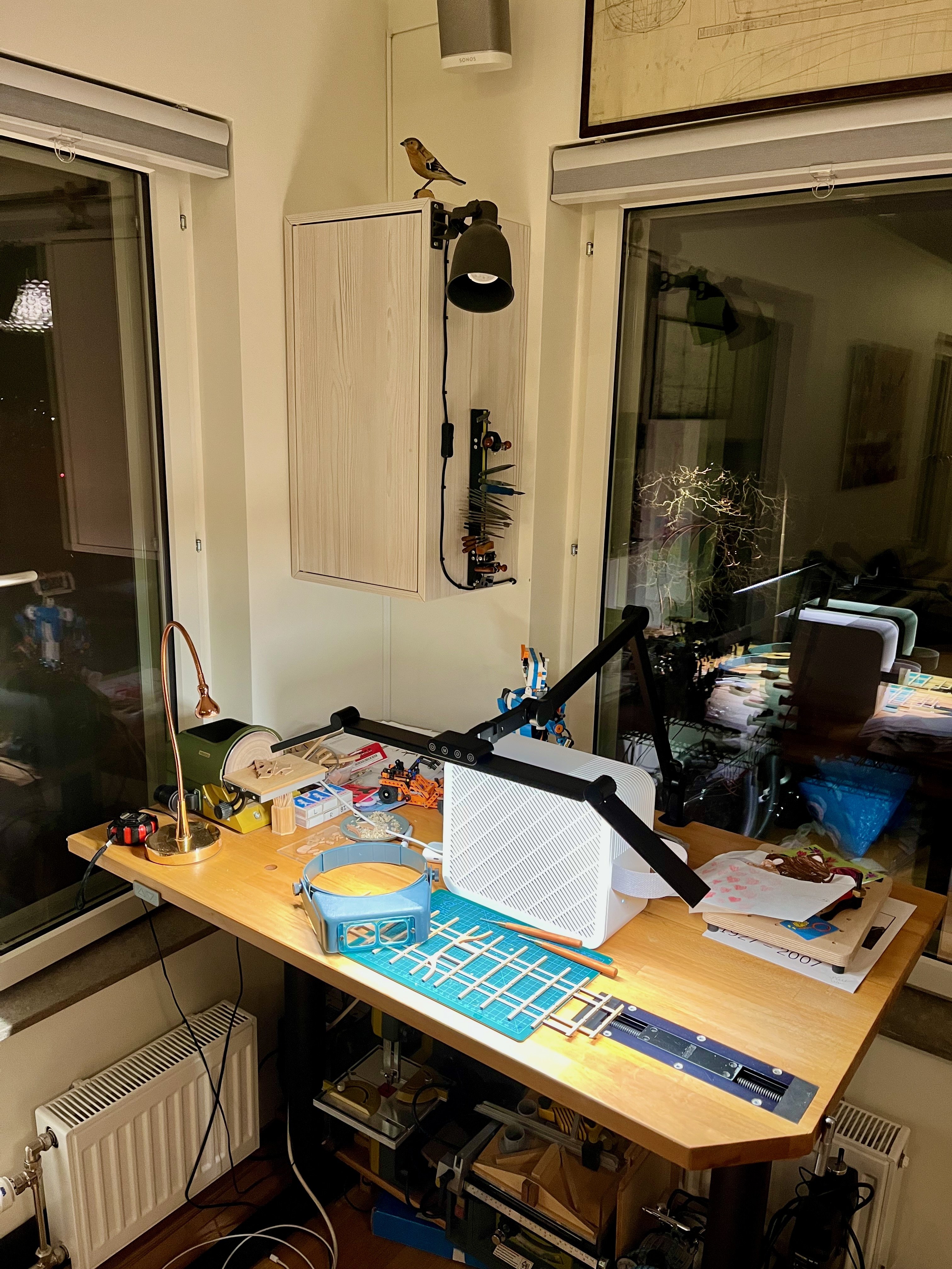 Discovered a very neat solution for sanding dust that is not coming from a particular tool (e.g. manual sanding). I work in a living room, so putting any workshop dust filter on a ceiling is not an option. But IKEA has a purifier UPPÅTVIND of just the right size - you can put it right on the table, capturing dust very close to the source. Impressively quiet (55db) even on the max speed (with a flow rate of 55 CFM), has a decent filter (EPA 12 class) and is very cheap (35 USD in Sweden, 50 in US. Filters are 5 and 15 USD respectively). Making a DYI version would cost many times more, and there is nothing in the market in that form factor. Proxxon ASA is mysterious, haven't seen one in the wild, and it is 4 times more expensive. Now I always have it on when modelling, just in case. It is that quiet, that you do not even think about it - just turn it on max for hours, you might even forget to turn it off afterwards -