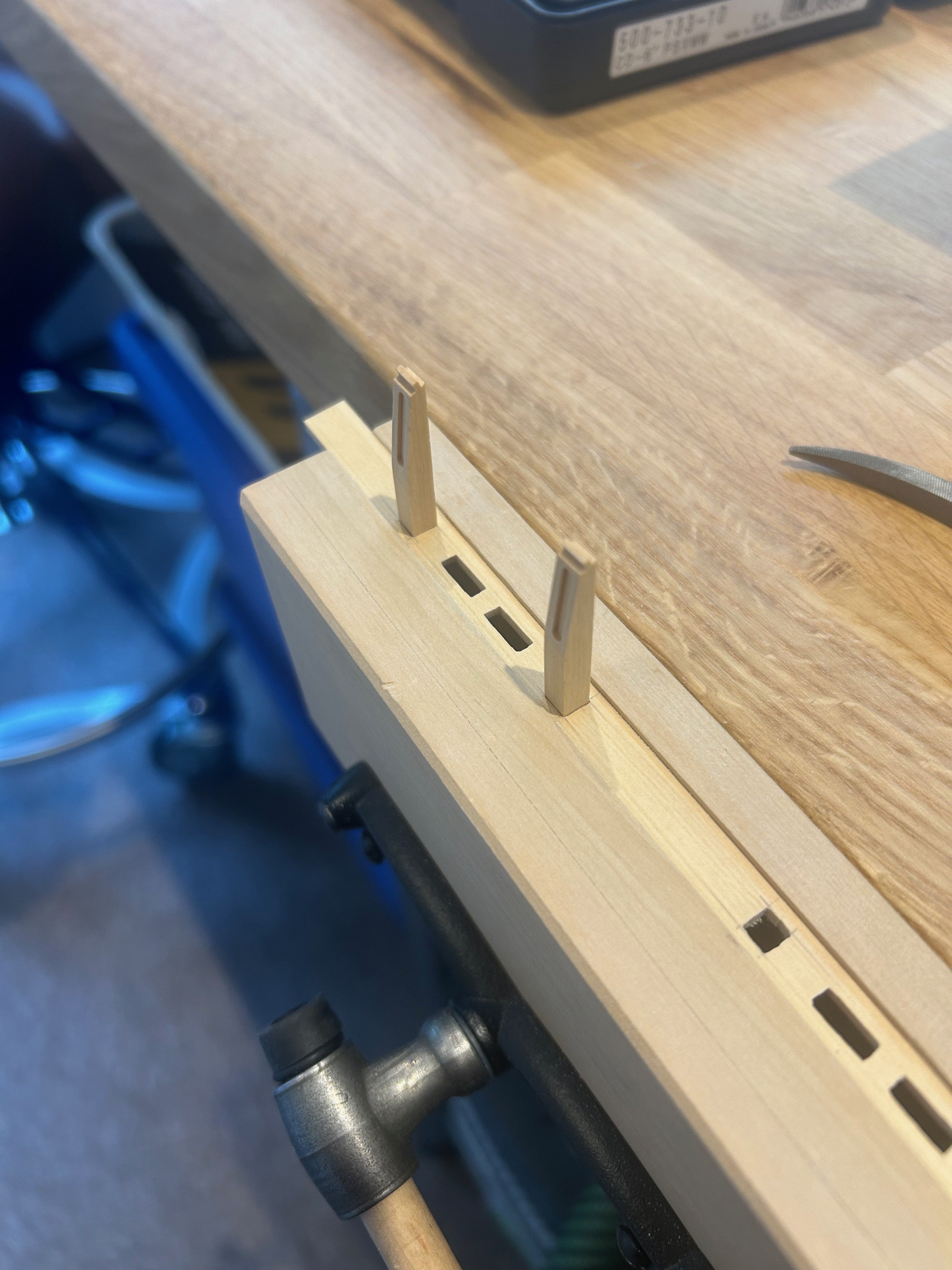 Guys thanks for the lovely comments 👍 I've made a start on the gratings which seem to be going ok but I'm not sure that they are correct so I do need a little help. The gratings have a gap of 2.3mm between laths - every example I have seen of making gratings involves using a table saw to cut the slots. Unfortunately I don't have a blade of that width and I also don't have an arbor where I can safely stack blades together. The closest cutter I have is a 2mm end mill so thats what I used. It took a while to mill it all out as each slot took 2 passes but I got there in the end I then cut the parts to the required sizes and also cut the flat laths I made a little jig to help with assembly which made the job very easy My first grating squared off and its actually the correct size which surprised me Now my question - looking at the underside I have the gaps shown in the picture below. Is this correct or have a done something wrong or missed something out? If someone could give me some advice it would be very welcome. Thanks Mark