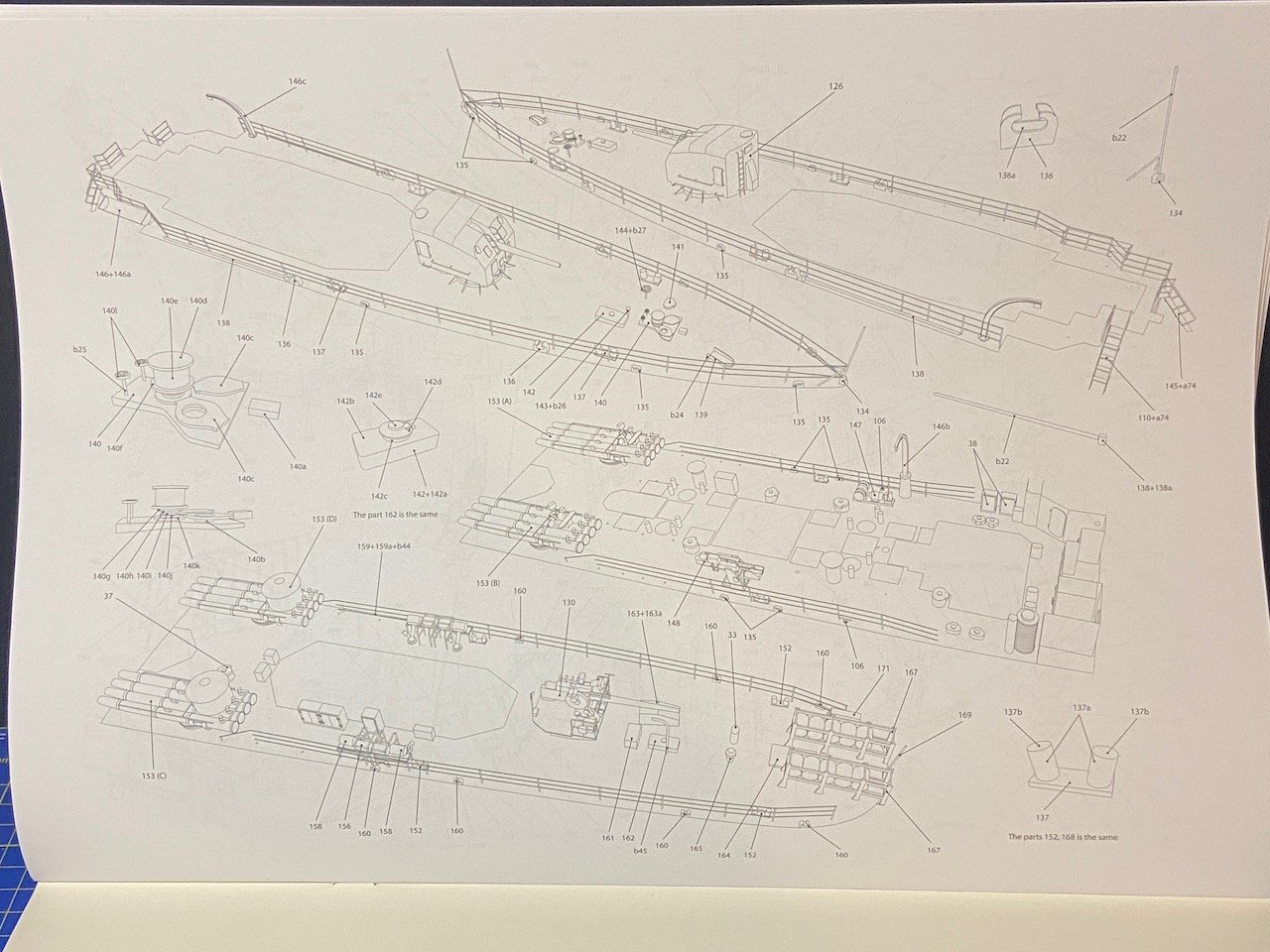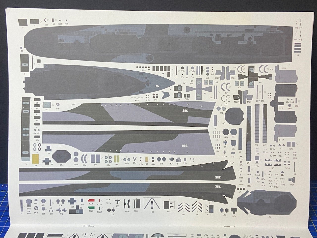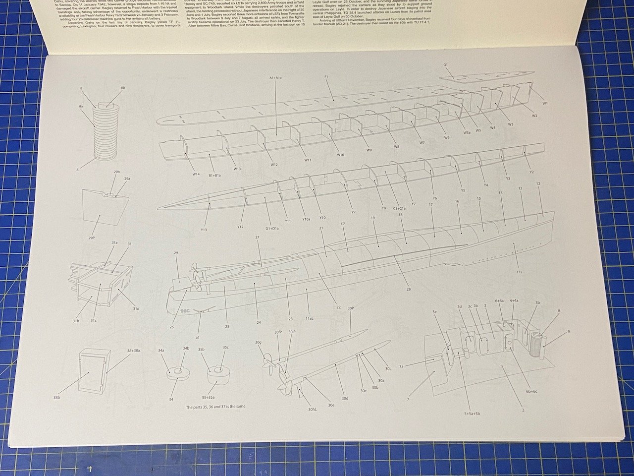 Having just finished my first steel navy paper model, the German WWI torpedo boat V108, it seems appropriate to start a blog on this new paper model project, USS Bagley on Pearl Harbor Day. I say appropriate, because the destroyer Bagley operated in the Pacific and was moored at Pearl Harbor on the day of the Japanese attack. Bagley's crew manned her .50cal machine guns and claimed to down a number of Japanese aircraft, though this couldn't be substantiated with all the anti-aircraft gunfire taking place. By mid-morning, she headed up the channel and out to the open sea under the command of a junior officer, as her captain, XO, and gunnery officer were still ashore at the time. The ship was the lead ship of her class, built in 1937, as a "Treaty Era" destroyer, which limited her displacement to 1500 tons. She had an active wartime career and earned 12 battle stars. The ship survived the war and was decommissioned in 1946. The Kit This kit is published by the Ukrainian company Avangard, and depicts the ship in her 1944 configuration, with camouflage. She was armed at this time with 4x 5"/38cal guns in single-gun turrets, 6x 20mm anti-aircraft mounts, a twin 40mm mount, 16x 21" torpedo tubes in four quad mounts, and 2x depth charge racks. Some of the printing, particularly of the decks, seems to be a bit too dark, and it’s hard to distinguish some of the printed details. I suspect I might end up having a hard time placing some of the parts because of how dark things look. I contacted the publisher about this, as I didn’t know if this was normal. As it turns out, due to the war in Ukraine, the company has been limited on available paper supplies, and the paper they have been able to get doesn’t absorb the ink the way that they would like. This may be too much of an issue for some. But, I think I will be able to manage. It will help that there is a jpeg image of this sheet posted on the company’s Facebook page, with the printed part numbers appearing more clearly. One thing that threw me, which had to be explained to me by someone at Avangard, is that there is one page that is clearly out of place. It’s a second page for the lower hull of a ship, but it’s different than the Bagley’s hull, and even has a label that says IJN Asashio. Apparently, this is not a mistake. There was a measurement error in the earlier Asashio kit, and there was extra space in the Bagley kit, so the publisher just stuck in the revised sheet. I’m just glad it wasn’t a error in my kit. The kit has almost no text, except the ship history. But, what text there is, is in English. The drawings seem clear enough. Of course, only an actual build will determine if there are any construction issues with the kit. Along with the basic kit, I ordered the laser-cut frames set as well as the details set, which is basically all of the railings, ladders, and other fine parts. All told, I think I spent less than $60 for the kit and accessories sets. I had a very hard time purchasing this kit, but no fault of the publisher. Living in the US, I discovered that it’s almost impossible to get any paper model products from Europe. I tried to buy this kit from Fentens (Germany), GPM, and Orlik, but none would ship to the USA due to tariff and customs issues. I only got lucky when I contacted Avangard directly about my situation, and they were able to help me out on a one-time basis and get this kit and accessories sets to me directly. Many thanks to Avangard for their help! Instructions and Parts I don't really have much experience with most paper models, except Shipyard kits, which are kind of their own animal I think the Avangard kits are pretty typical in terms of instructions and parts. There is no written instruction at all, only diagrams are provided. Interestingly enough, the only text is on the inside front cover and back cover, which are only written in English. Building Begins... The beginning stages of construction of paper models, seem pretty straight forward. These parts are from the laser-cut frames set. At 1/200 scale, this is a pretty good side hull, just about 20-1/2" long. I'm not sure if I did this the way I should have, gluing the upper and lower hulls together at this stage. But, it's all a learning process. Don't know how much time I'll spend on this model, so it may be a slow build, but construction has begun...