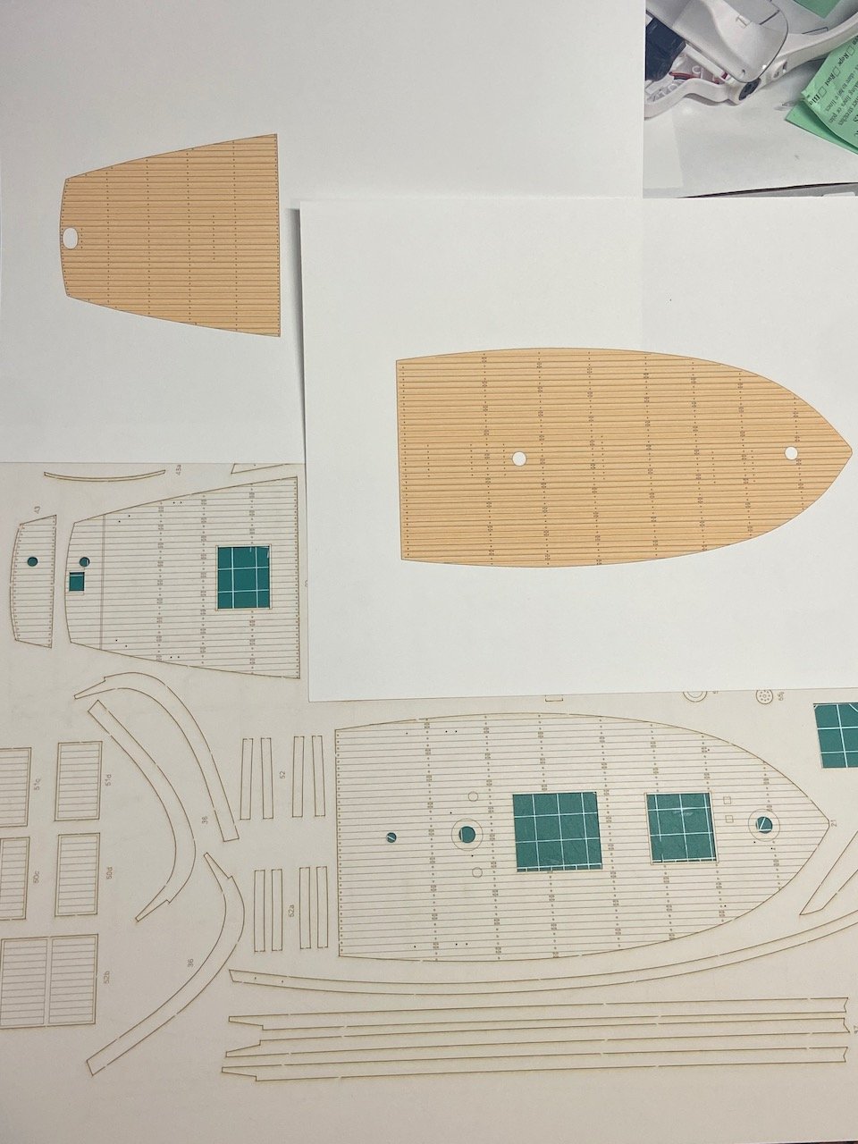 I printed one of the deck patterns at 1/72 scale for the larger model. You can see it and the laser-etched deck provided in the kit.