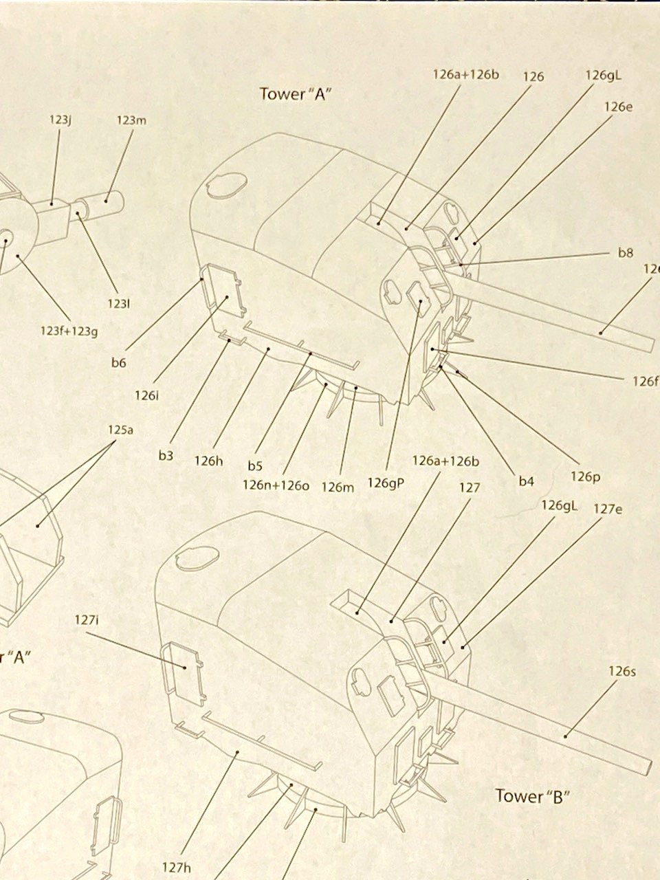 ... And all the parts for the turret the kit calls Tower "A":