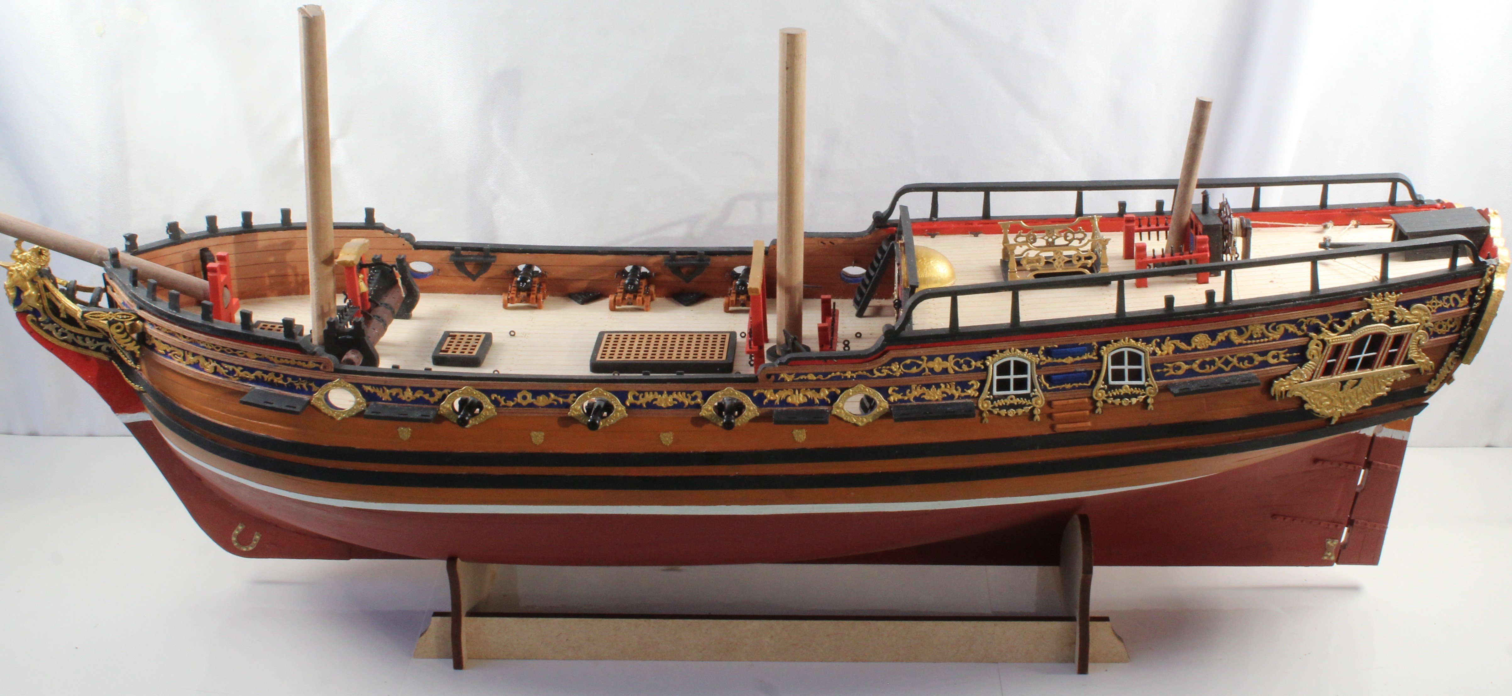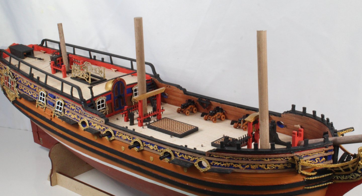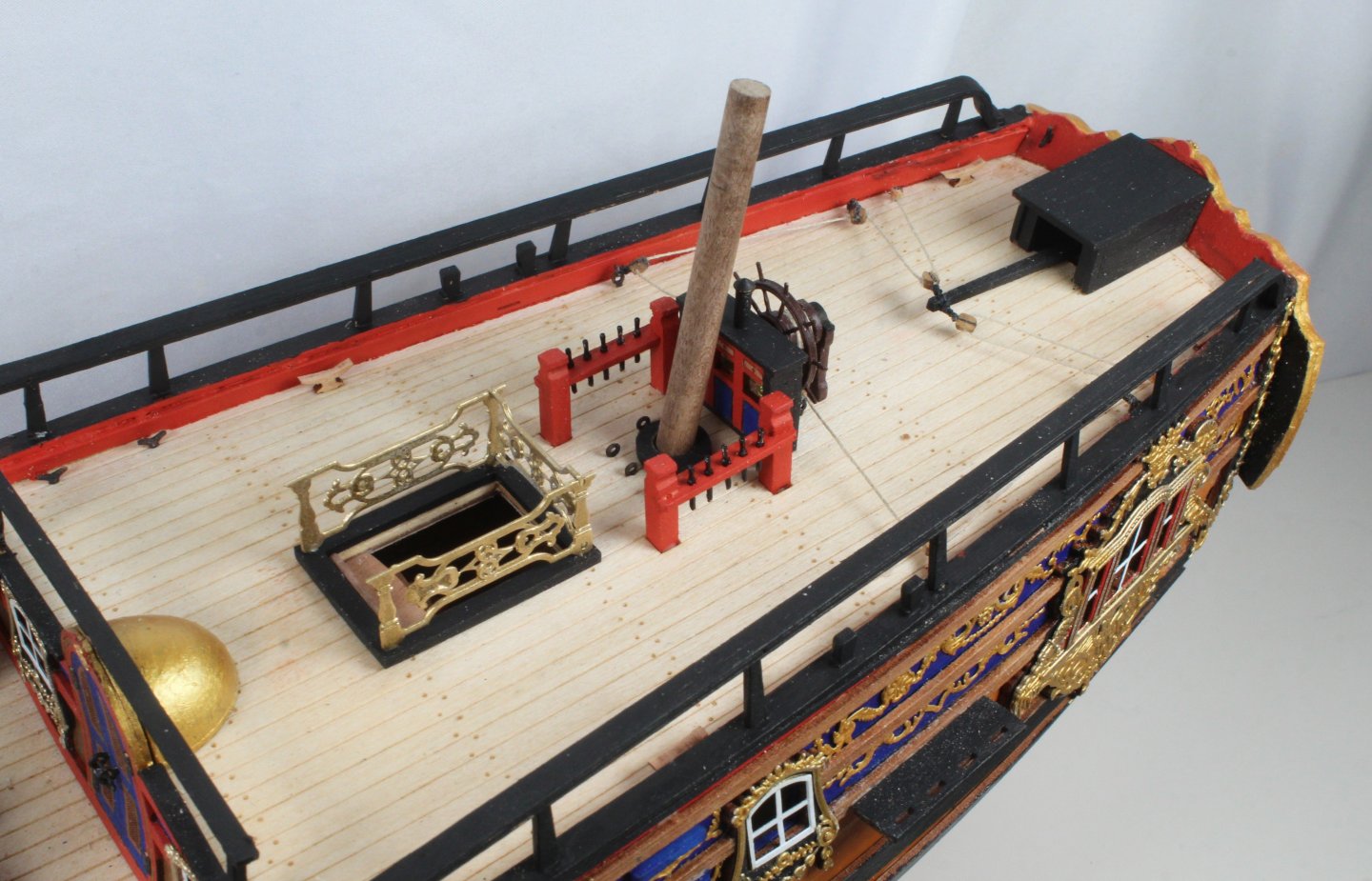 Build Log – Post 39 (20/01/26) Task 63 – Completing The Deck Work All the deck items have now been installed. SInce my last post I have added the belay pins to the various rack, the cannons have been added along with the shot garlands. The windlass assembly has been secured in place. Eyebolts added to all the gun ports. I have not added the channel deadeye strops / chain links as I normally do these when adding the shrouds so they can follow the same path. I did rig one of the cannons but then decided I preferred the unrigged version. I have started work the yard production and will add a post in due course. Photos Here is a selection of photos of the current build status. Lower Deck Upper Deck Stern Bow Deck Area Cannons and shot garlands Rear section of lower deck Upper Deck Mizzen Bitts with belay pins Decorative windows