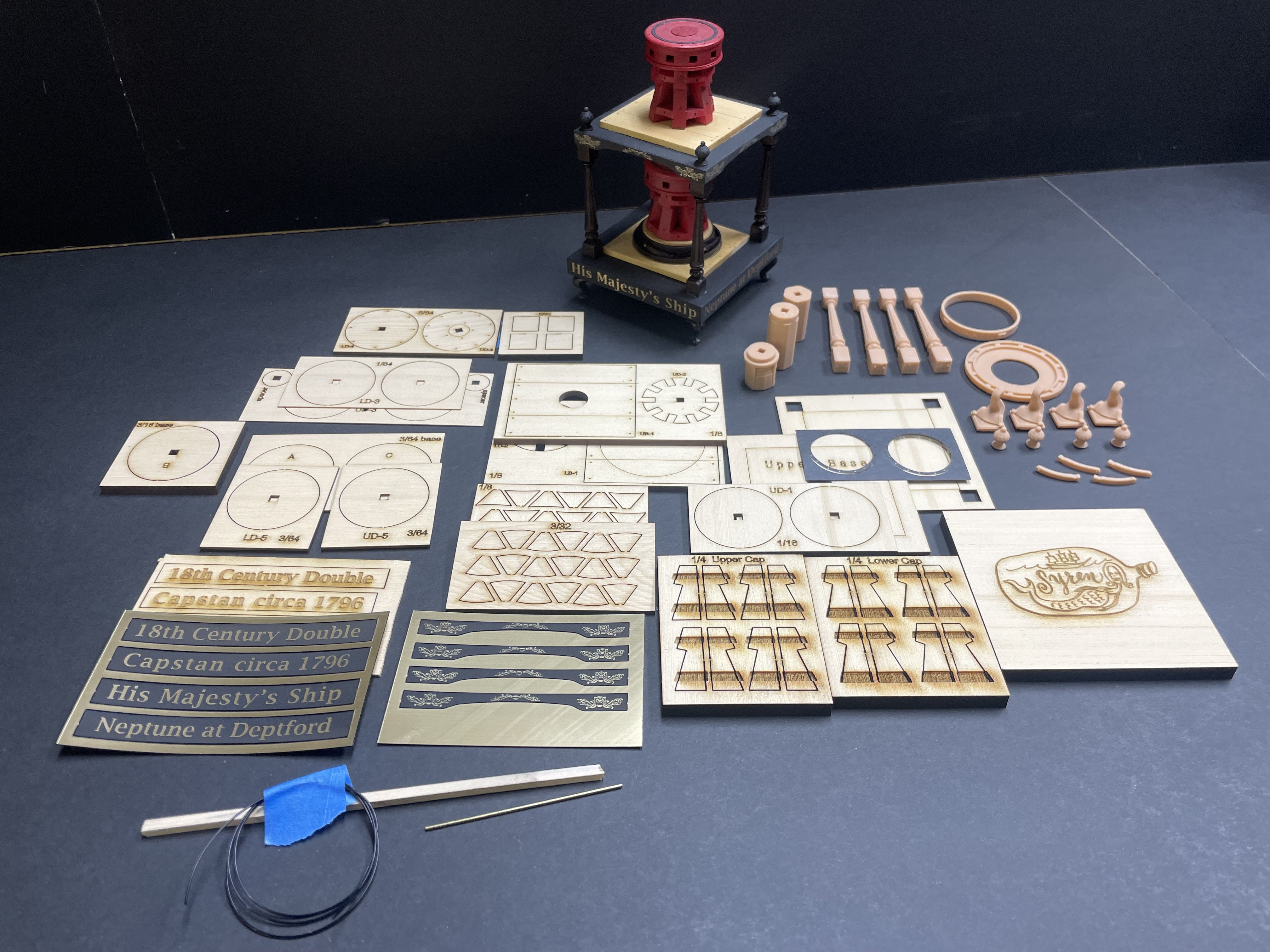 Hey everyone, I've been hard at work here getting some Syren kits produced in between Portland prototype work. Here’s the capstan kit that Chuck designed, it’s a nice simple little model to assemble but quite complex and detailed as we all have come to expect from Chuck. I’ll have these in stock on my website hopefully by next week along with Winchelsea starters and ch 1 and 2 following.