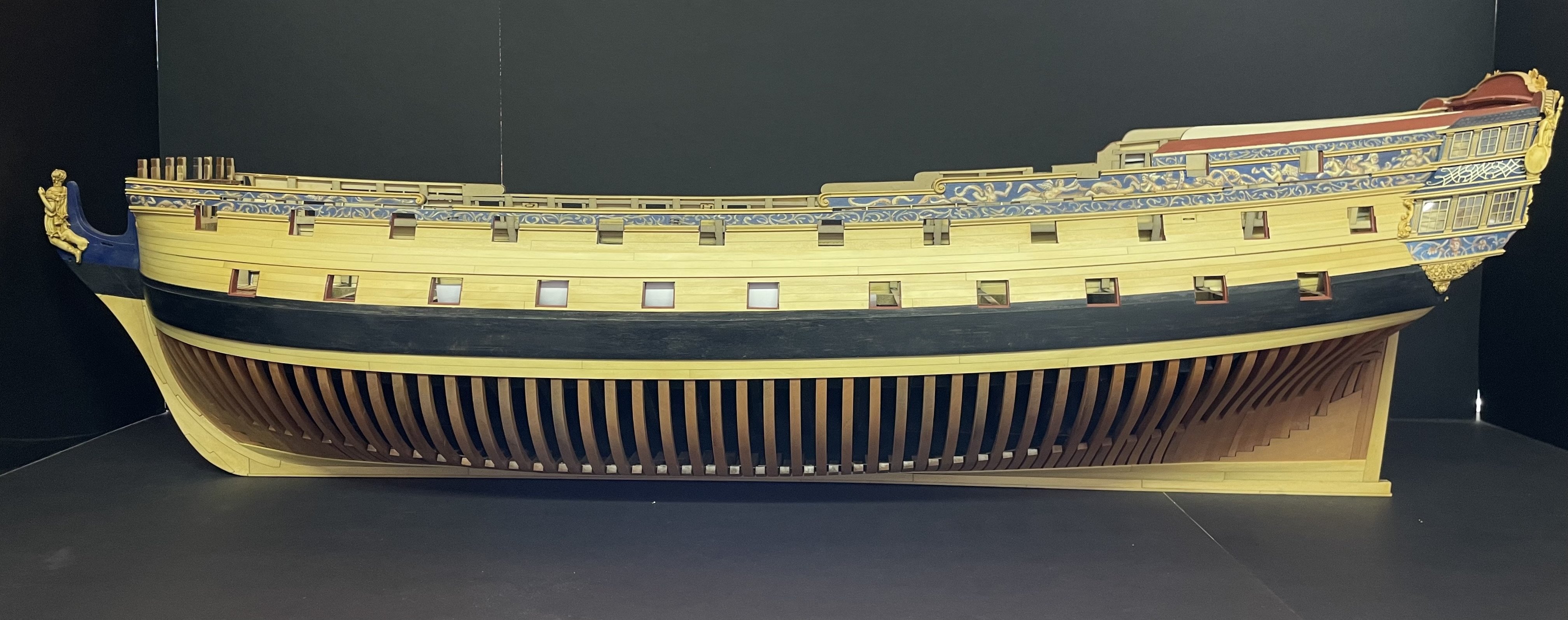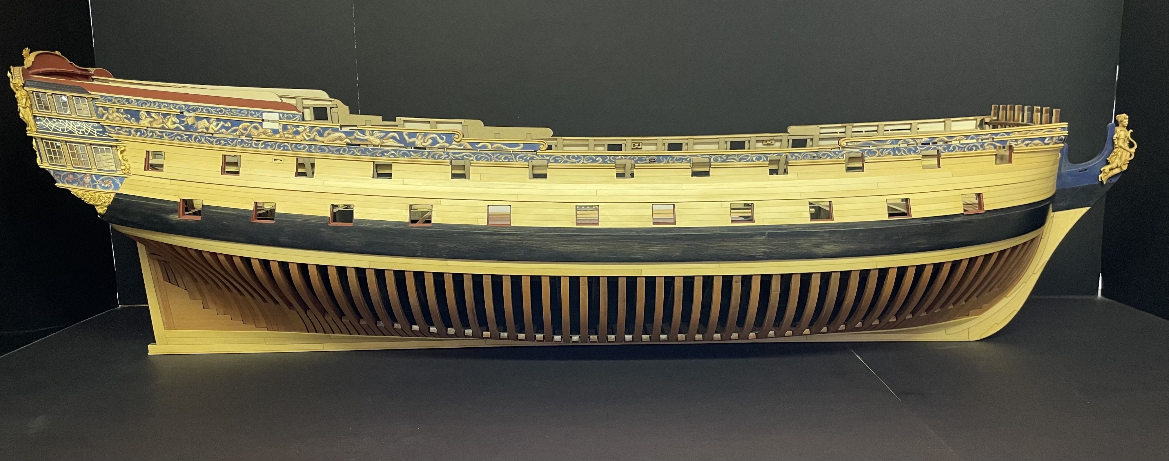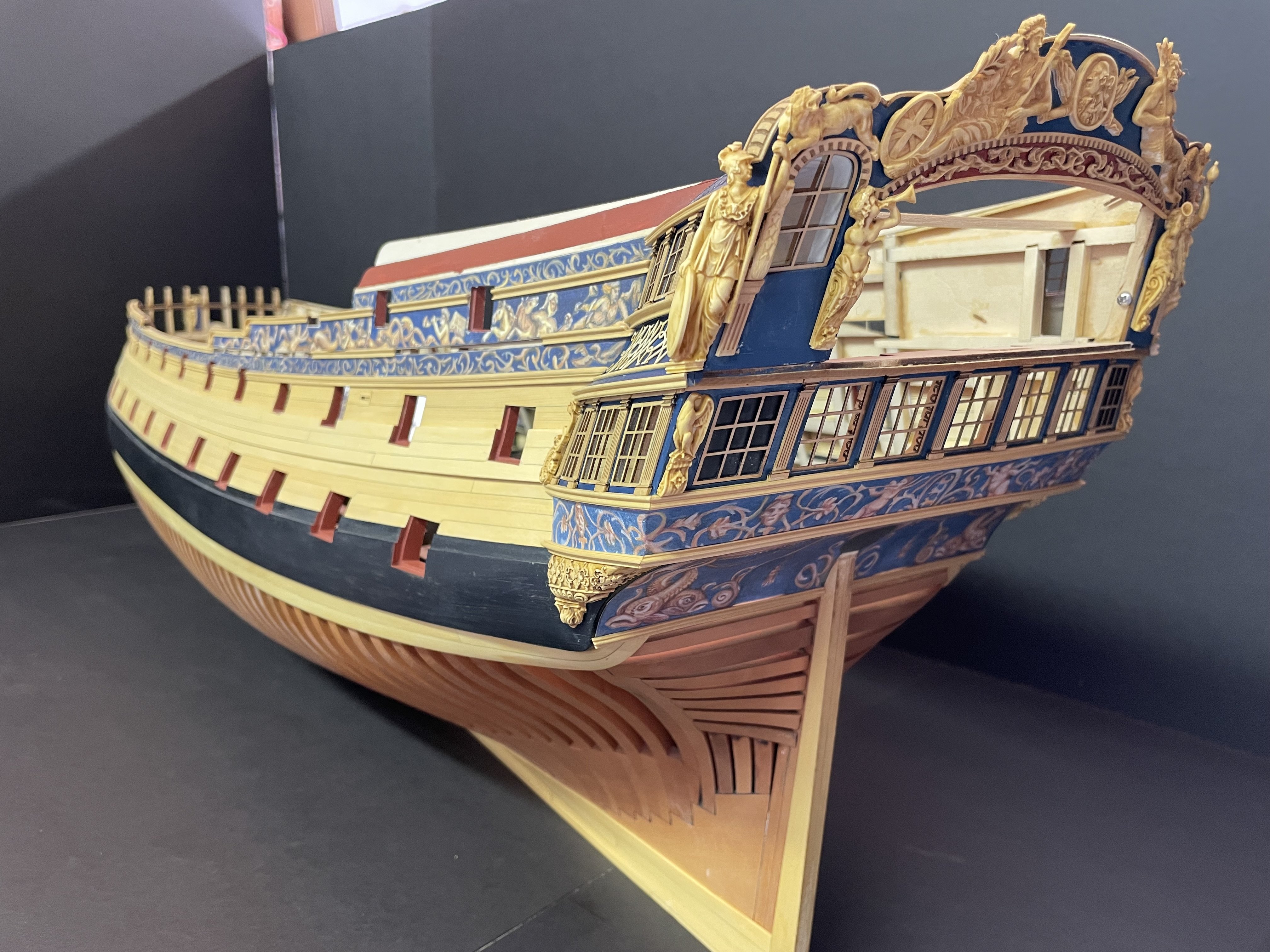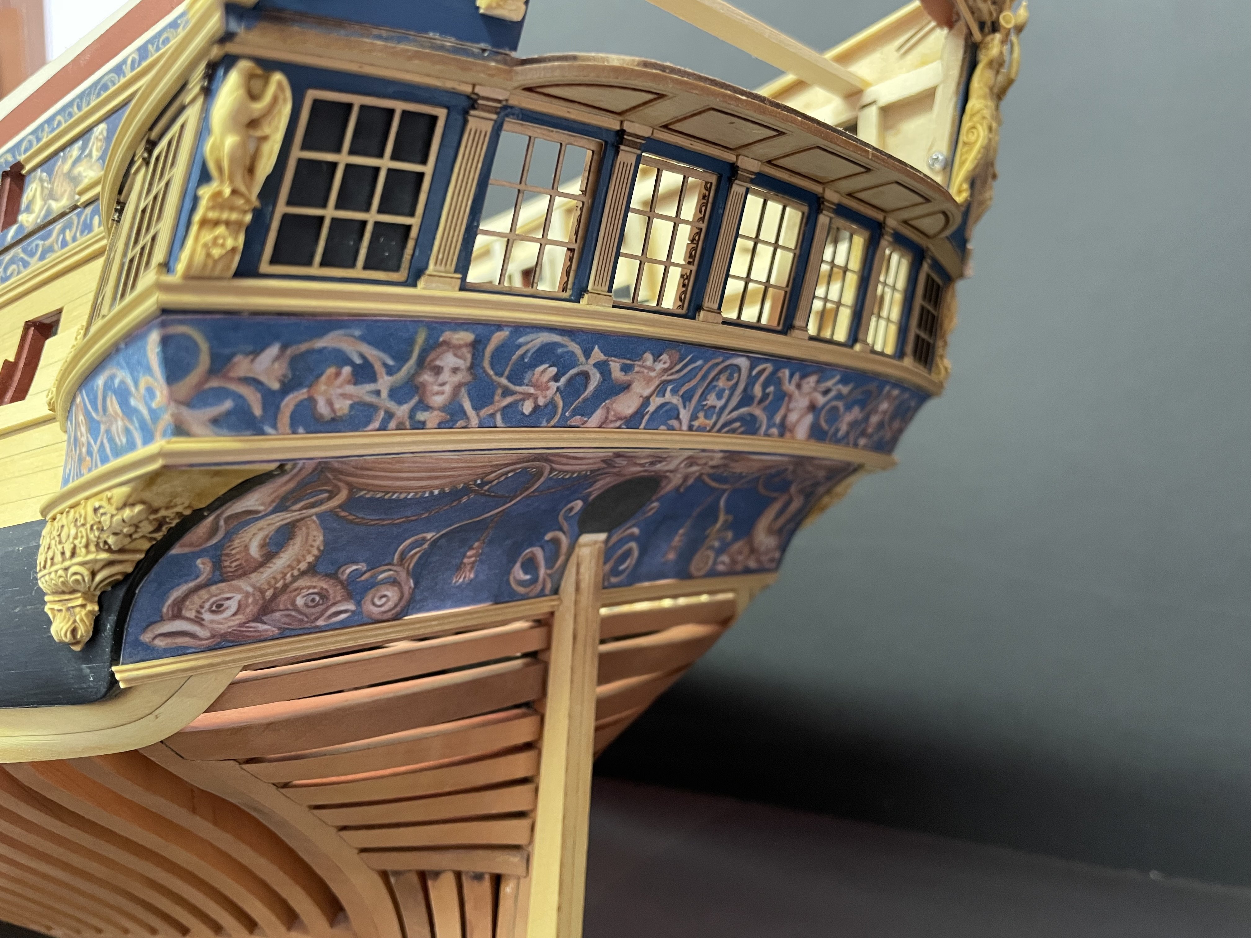 Almost finished with Ch 3. Need to add some strips to the QGs, a smaller frieze on the QG roofline and the stbd side upper molding and scrolls.