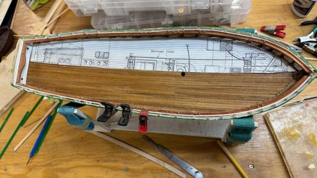 Phil To seal the insides.......That sounds like great advice. Back when I started all this modeling, my hulls were for Radio Control sailing and both inside and outside were epoxied. Those hulls will last a long time..😀 I have never done that on my static hulls, but it makes a lot of sense to at least seal them, and I will do it. On this build , especially when the top strakes I am doing are so thin, a thin epoxy makes good sense. thanks for the advice Jon