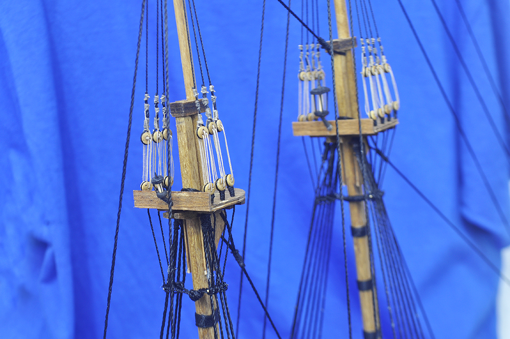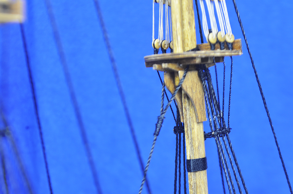 Up till now, basically all the stays and shrouds are done. Next, I will need to put the gaffs on, then only continue back working my ratlines. :)