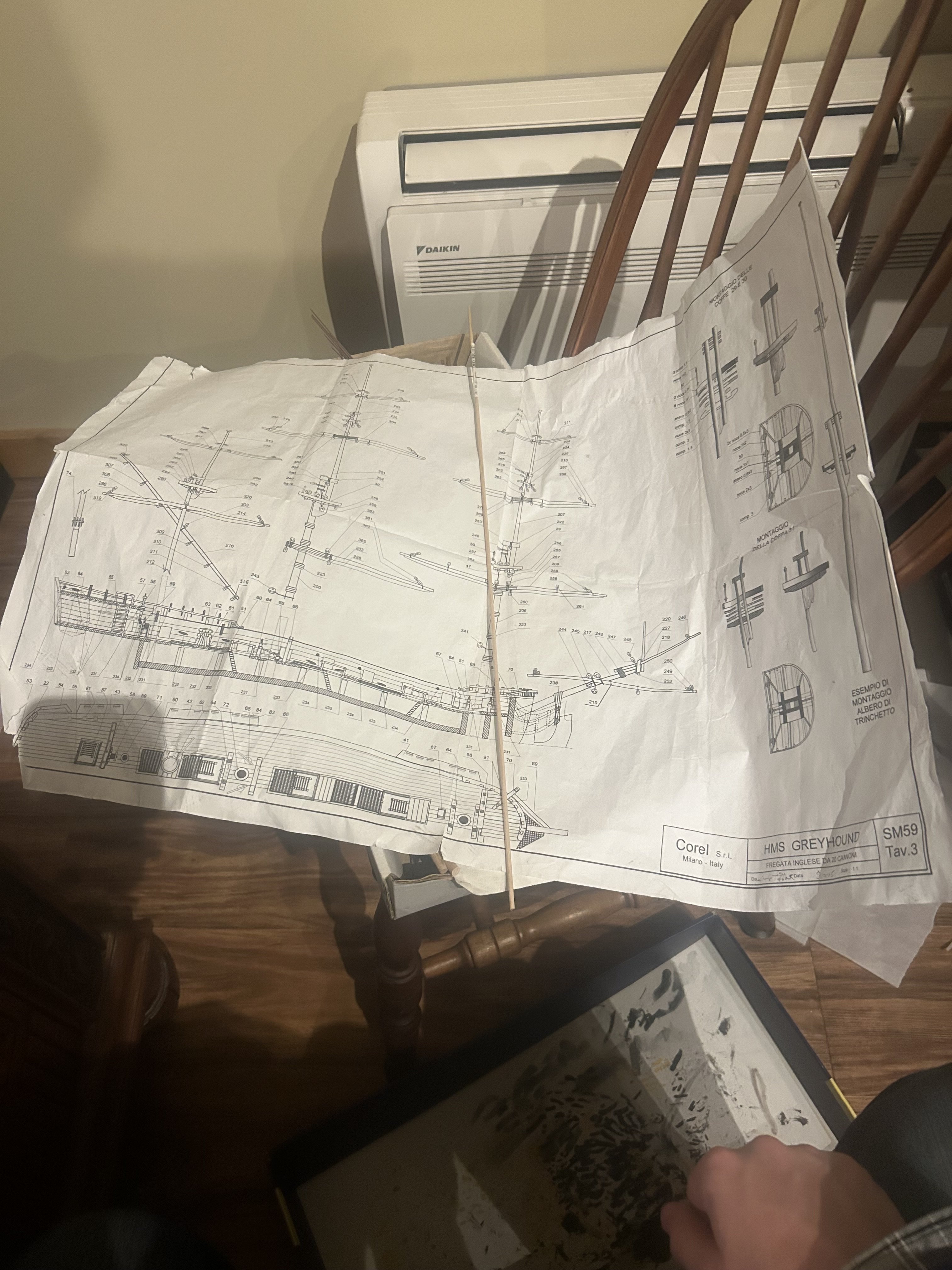 For future Greyhound builders, the masts get virtually no instructions or measurements in the packet.