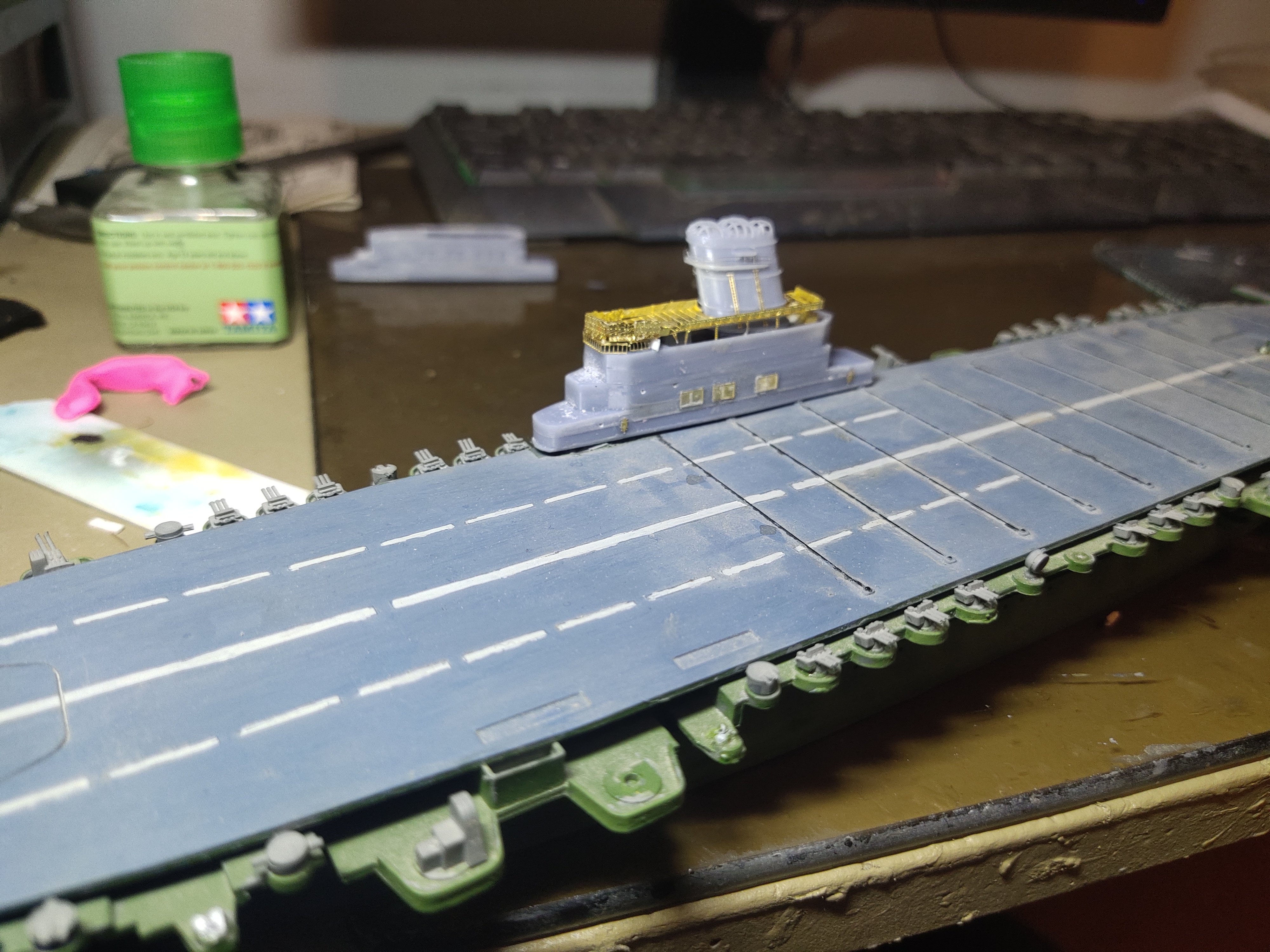 Baker, the funnel is actually leaning out so the ship's exhaust gases do not interfere with flight operations especially for the aircraft landing on the flight deck from astern.