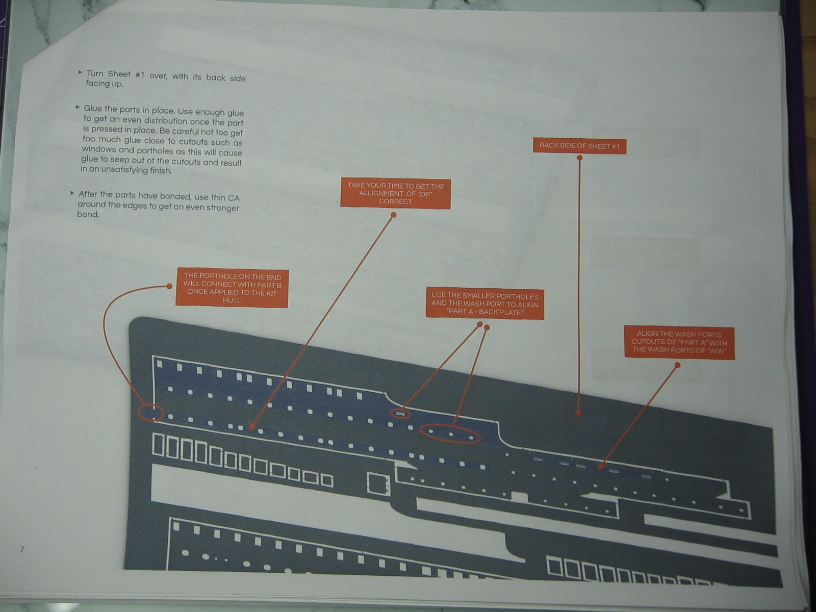 In so doing, I discovered a mistake in the instructions. The location of the non-existent porthole indicated (starboard side only) is not where the instructions say, but rather ~20mm further aft. But it's a moot point anyway, as Trumpeter did not even mold this porthole into the hull, and therefore, it's obvious.