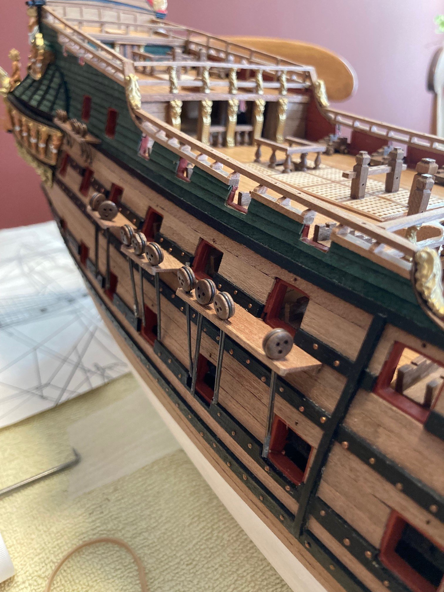 I know other Mamoli Friesland builders have referenced their kits having abnormally long dummy guns... unfortunately my old vintage has the dummy guns that are too long.