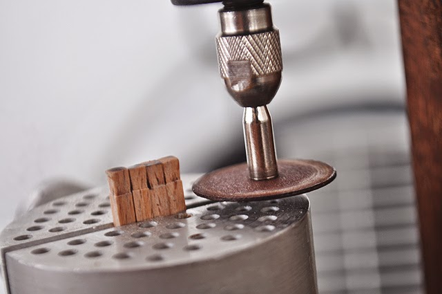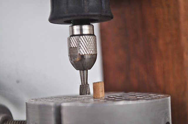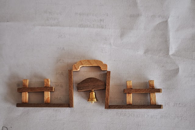 Anyway, this is how I make my belfry. I used the beech woods for the bits that came with the kit and 2mm x 5mm walnut strip for the rail. To produce the bits, I mill them with a reverse milling bit to create the head, and then cut them into half.