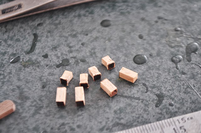 Corel doesn't provide a clear instruction on the cannon rigging, and even the rigging blocks are not coming in correct size. Purchasing them will be really out of my budget, while making 80 of them sounds bit crazy for me, so I decided to make a easier version. :P