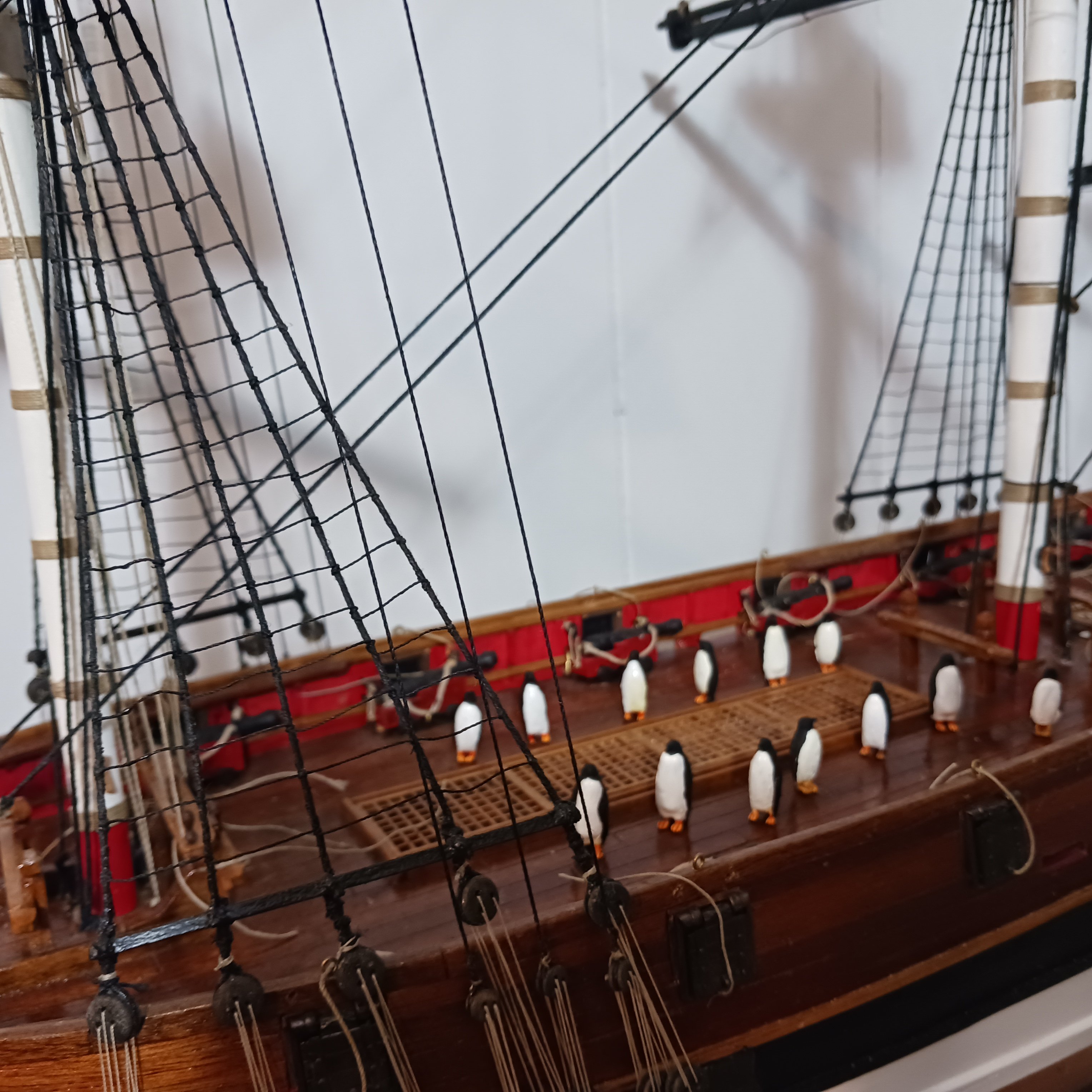 Another roll of thread is coming  to an end, but we got stock lol. Good thing, because this has a lot of rigging  and I am no where near done lol.